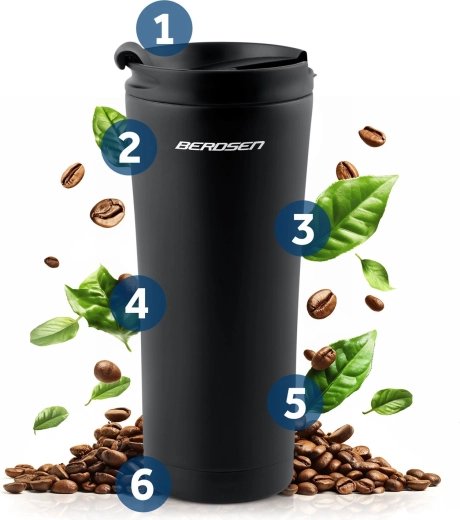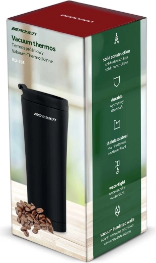 Lehký a odolný termohrnek BERDSEN 470 ml z nerezové oceli udrží nápoje horké až 12 hodin a studené až 24 hodin. Má dvoustěnnou vakuovou izolaci, těsnící víčko s pojistkou proti rozlití a ergonomický tvar, který skvěle padne do ruky i do držáku v autě. Ideální na cestování, sport i do kanceláře.