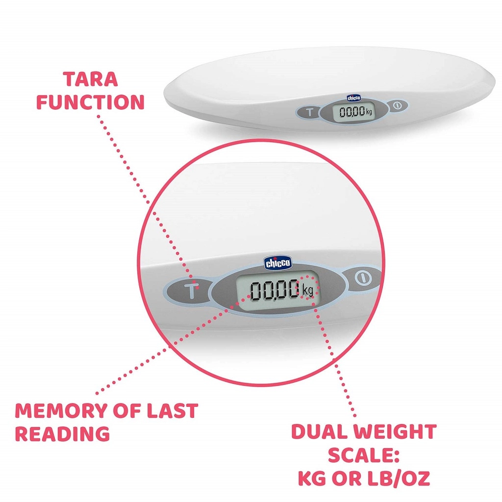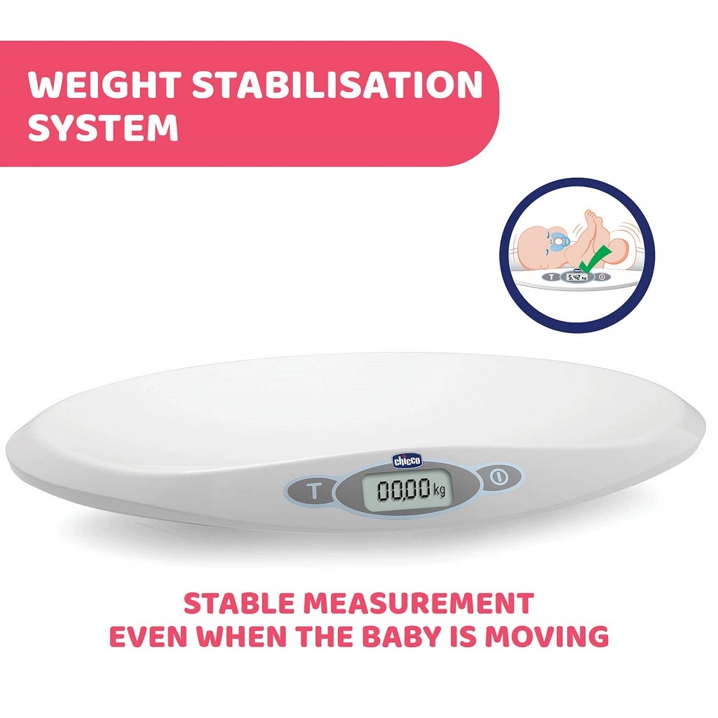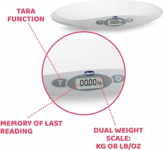 Digitální dětská váha Chicco Baby Comfort spolehlivě zváží miminko od prvních dnů života. Nabízí rozsah 30 g až 20 kg, přesné vážení po 10 g, stabilizaci měření při pohybu a přehledný LCD displej. Díky paměti posledního měření a integrovanému pravítku do 55 cm je sledování růstu jednoduché a pohodlné.