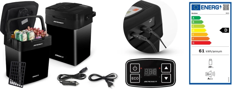 Užijte si chladné nápoje a čerstvé jídlo na cestách s přenosnou autochladničkou BERDSEN ICEMAX 29 l. Nabízí chlazení i ohřev, elektronický displej s nastavením teploty, režimy ECO a Normal pro úsporu energie a praktické napájení 12 V i 230 V. Díky USB portu dobijete telefon, vnitřní mřížka pro organizaci a vestavěný ventilátor zajistí rovnoměrné chlazení. Ideální na dovolenou, piknik i do auta.
