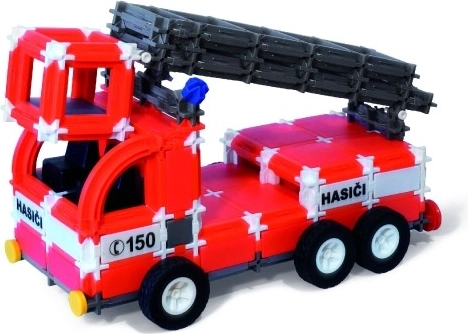 Postavte si hasičský vůz se zvedací plošinou, velkou cisternu s možností natáčení i velitelský (technický) vůz. Nechybí ani tematické samolepky „HASIČI, RESCUE, FIRE“ a číslo tísňové linky 150, které dětem pomohou naučit se důležité zásady bezpečnosti.