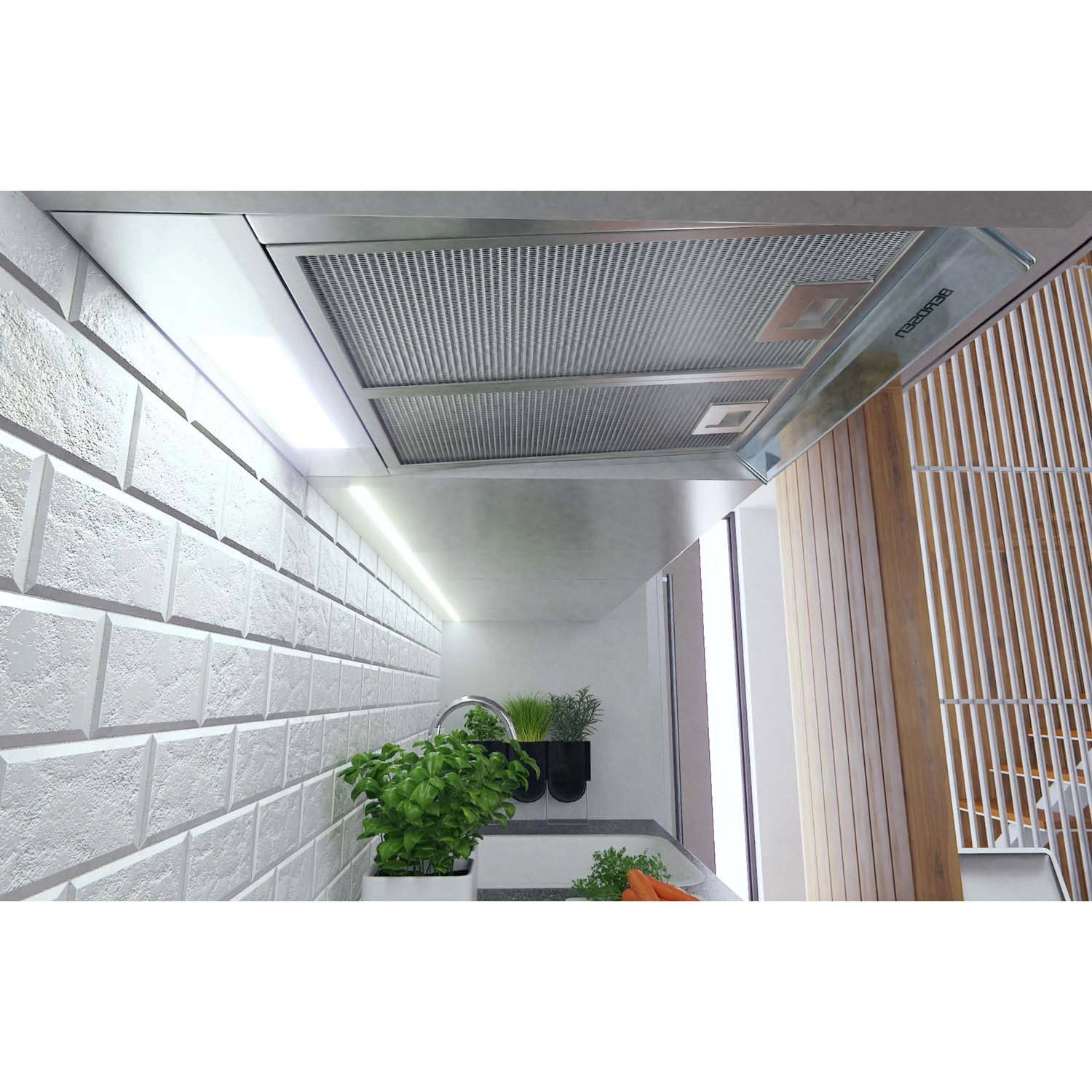 Kompaktní podskříňkový odsavač par BERDSEN v šířce 50 cm v elegantní bílé barvě nabízí vysokou účinnost až 205 m³/h, tiché mechanické ovládání a úsporné LED osvětlení. Díky 5vrstvému hliníkovému filtru spolehlivě zachytí mastnotu a může pracovat jako odtah i recirkulace (s volitelným uhlíkovým filtrem).