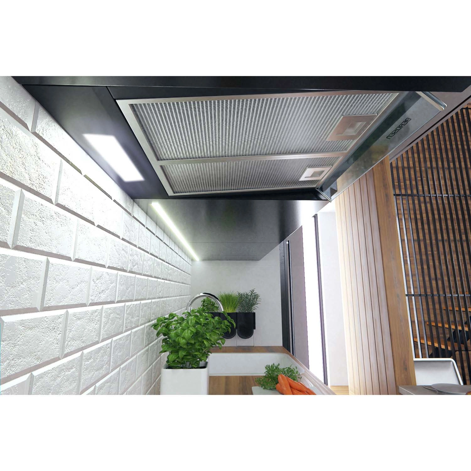 Díky možnosti montáže do skříňky nebo na stěnu je instalace flexibilní. 5vrstvý hliníkový filtr je omyvatelný a snadno se udržuje. Pro provoz v recirkulačním režimu stačí doplnit uhlíkový filtr BERDSEN TYP-A (volitelné příslušenství).