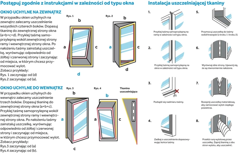 - Tkanina těsnění, samolepicí páska se suchým zipem, návod k montáži
