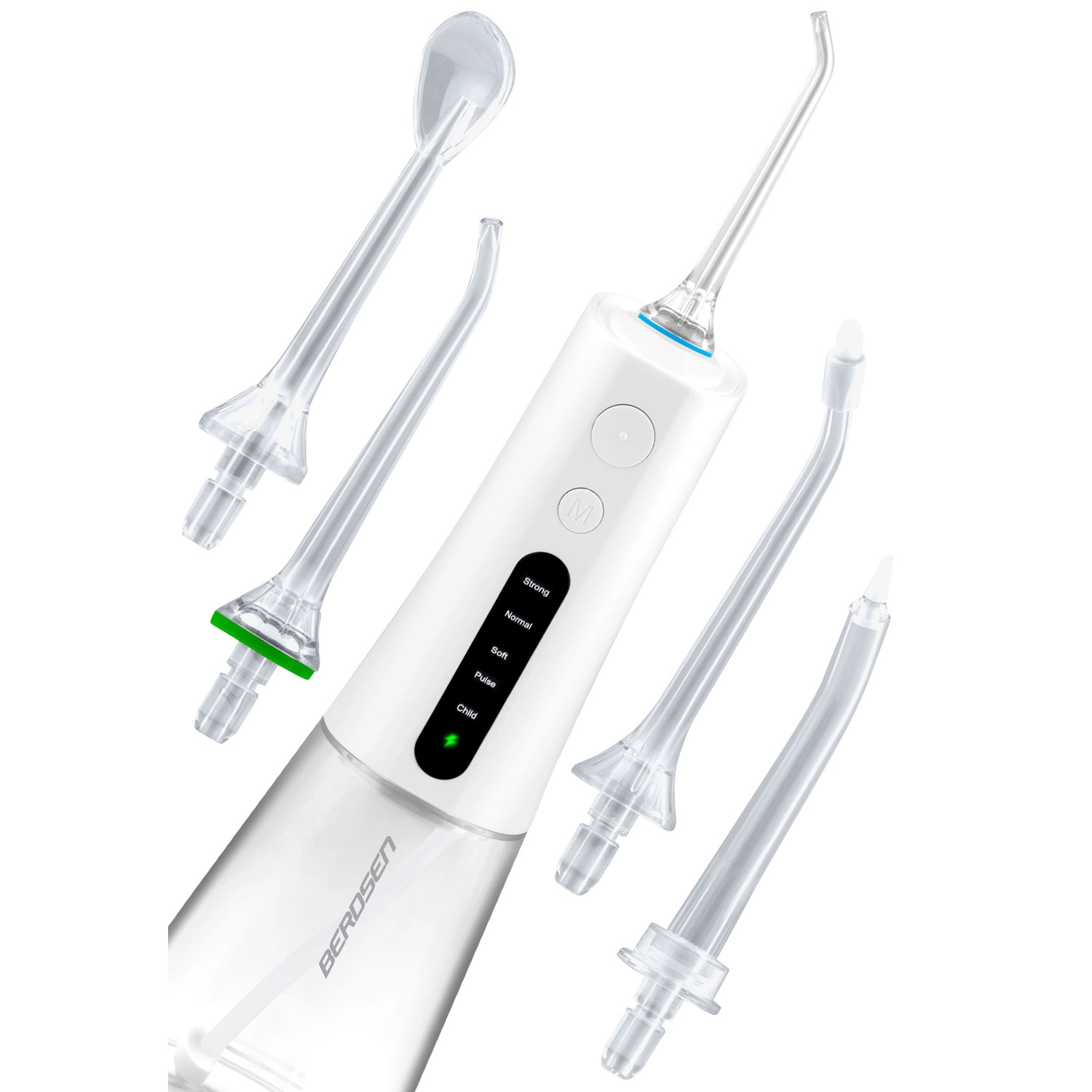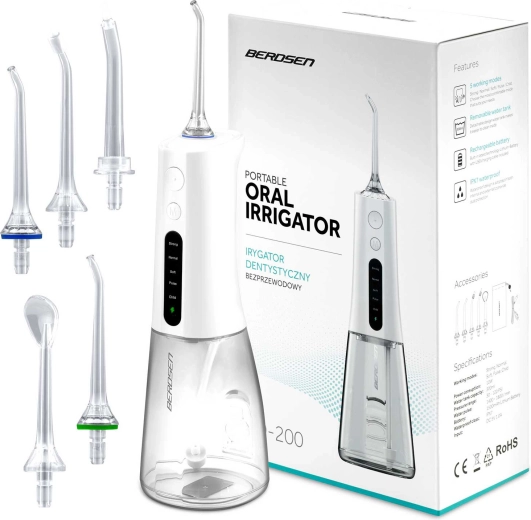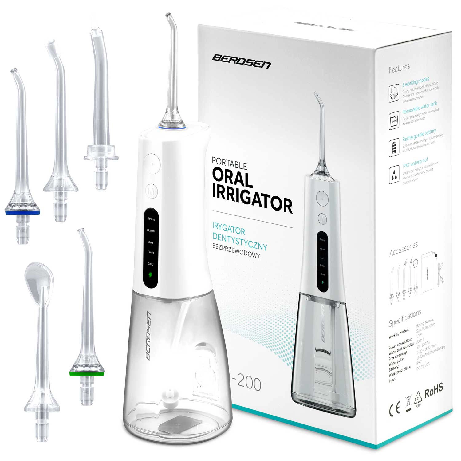 Bezdrátový irigátor BERDSEN účinně odstraňuje zbytky jídla, plak i bakterie z míst, kam se běžný kartáček nedostane. Je ideální pro mezizubní prostory, korunky, můstky, implantáty i ortodontické aparáty. Štíhlý proud vody s až 1800 pulzy/min zajišťuje precizní hygienu a svěží pocit po celý den.