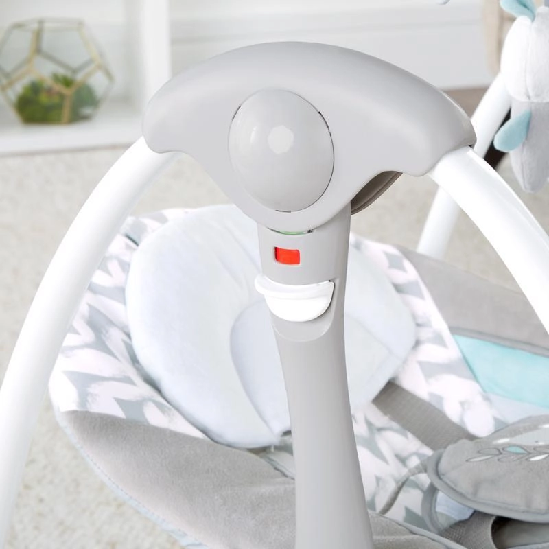 Praktická dětská houpačka 2v1 INGENUITY Raylan se během chvilky promění na stacionární lehátko díky funkci EasyLock. Nabízí 5 rychlostí houpání, 12 melodií, 4 přírodní zvuky s nastavením hlasitosti a tichý provoz WhisperQuiet pro klidný spánek. Díky skládacímu designu SlimFold se snadno přenáší a skladuje. O bezpečí se stará 5bodový pás a protiskluzové nožičky.