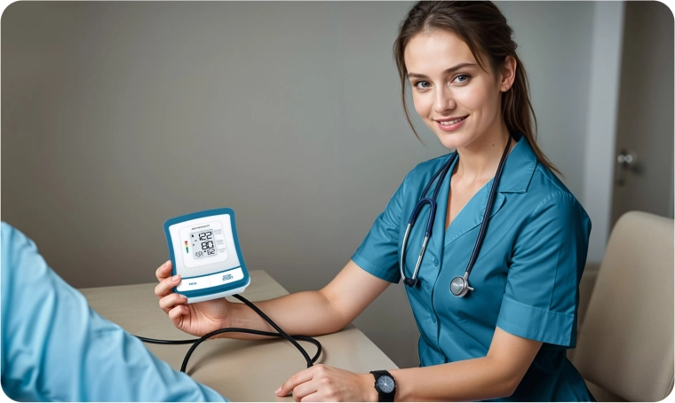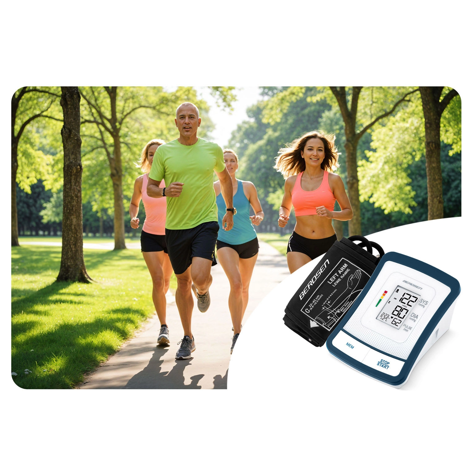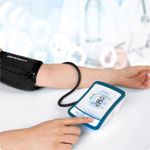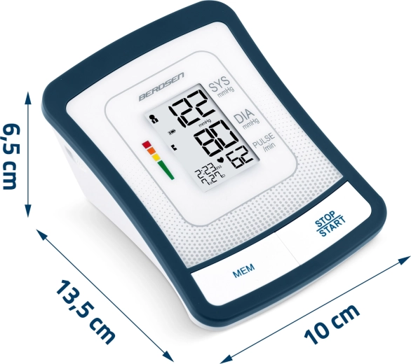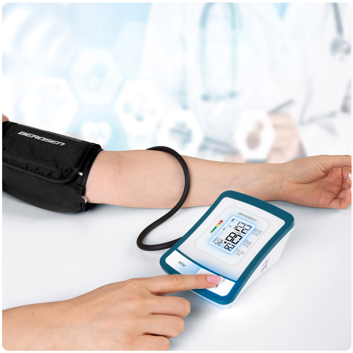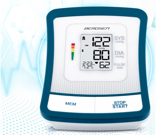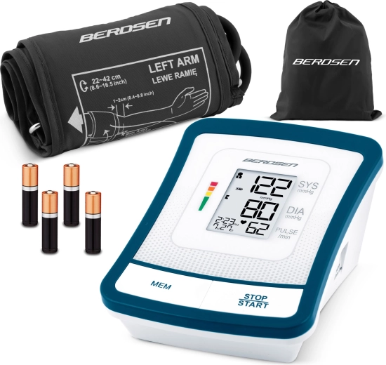 Digitální naramenní tlakoměr BERDSEN BD-120 přináší rychlé a přesné měření krevního tlaku a pulsu v pohodlí domova. Nabízí paměť až pro 120 měření, detekci nepravidelného srdečního rytmu (IHB), jednoduché ovládání jedním tlačítkem a velký, čitelný LCD displej s barevnou škálou klasifikace tlaku. V balení najdete také manžetu 22–42 cm, pouzdro a 4 baterie AA pro okamžité použití.
