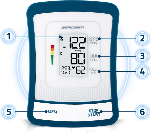 Tlakoměr BERDSEN BD-120 je spolehlivý pomocník pro každodenní kontrolu zdraví. Díky velkému LCD displeji s přehledným zobrazením systoly, diastoly a pulsu uvidíte výsledky ihned a bez námahy. Přístroj upozorňuje na nepravidelný srdeční rytmus, má zvukovou signalizaci, automatické vypnutí a indikátor stavu baterie.