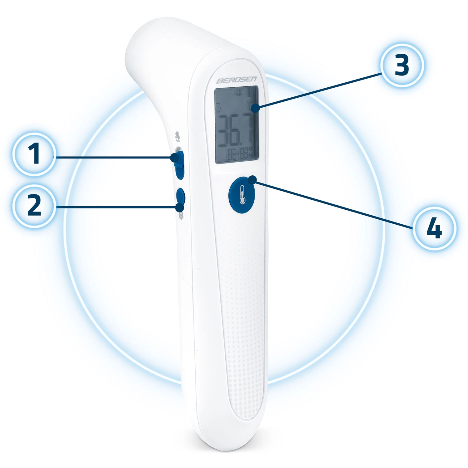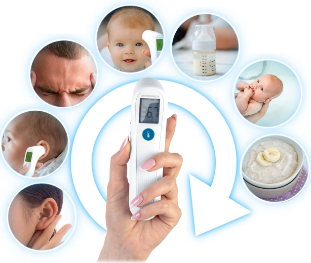 Zařízení nabízí režim čelo pro měření těla a režim objekt pro kontrolu teploty mléka, koupele nebo jídla. Interní paměť 30 měření s datem a časem usnadní sledování vývoje teploty při onemocnění. Nastavitelný tichý režim, možnost změny jednotek °C/°F a automatické vypnutí šetří baterii i váš čas.