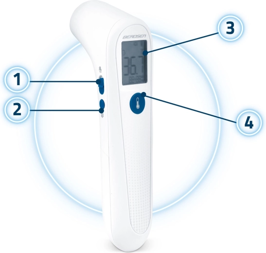 Bezkontaktní infračervený teploměr Berdsen BD-101 je spolehlivý pomocník pro rychlé a přesné sledování tělesné teploty i teploty povrchů. Díky okamžitému měření přibližně za 1 s a bezkontaktnímu provozu je ideální pro děti, seniory i noční měření bez probuzení. Podsvícení LCD ve 3 barvách umožní rychle rozpoznat normu, zvýšenou teplotu i horečku.
