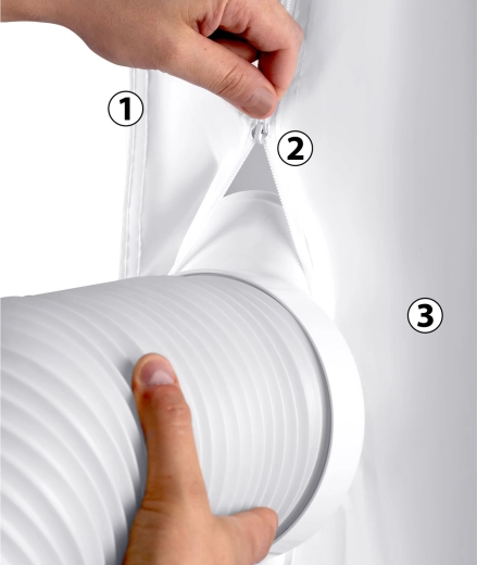 Součástí balení je těsnění pro výklopná okna až do obvodu 400 cm. Zabraňuje návratu teplého vzduchu a hmyzu a zvyšuje účinnost chlazení.