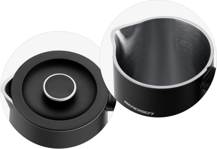Vnitřek z nerezové oceli SUS 304 je odolný, hygienický a bez BPA. Díky funkci Keep Warm udržíte zvolenou teplotu až 2 hodiny. Otočná základna 360°, protiskluzové nožky, úložiště kabelu a odnímatelné víko zajišťují snadnou manipulaci a komfort při každodenním použití.