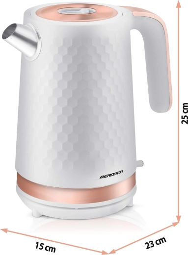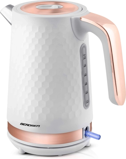Objevte pohodlné a bezpečné vaření vody s konvicí BERDSEN, která díky výkonu 1850–2200 W zajistí rychlý var a úsporu času. Kovová konstrukce s matnou povrchovou úpravou je odolná, snadno se udržuje a skvěle doplní interiér. Ukazatel hladiny vody a podsvícený vypínač zpříjemní každodenní použití.