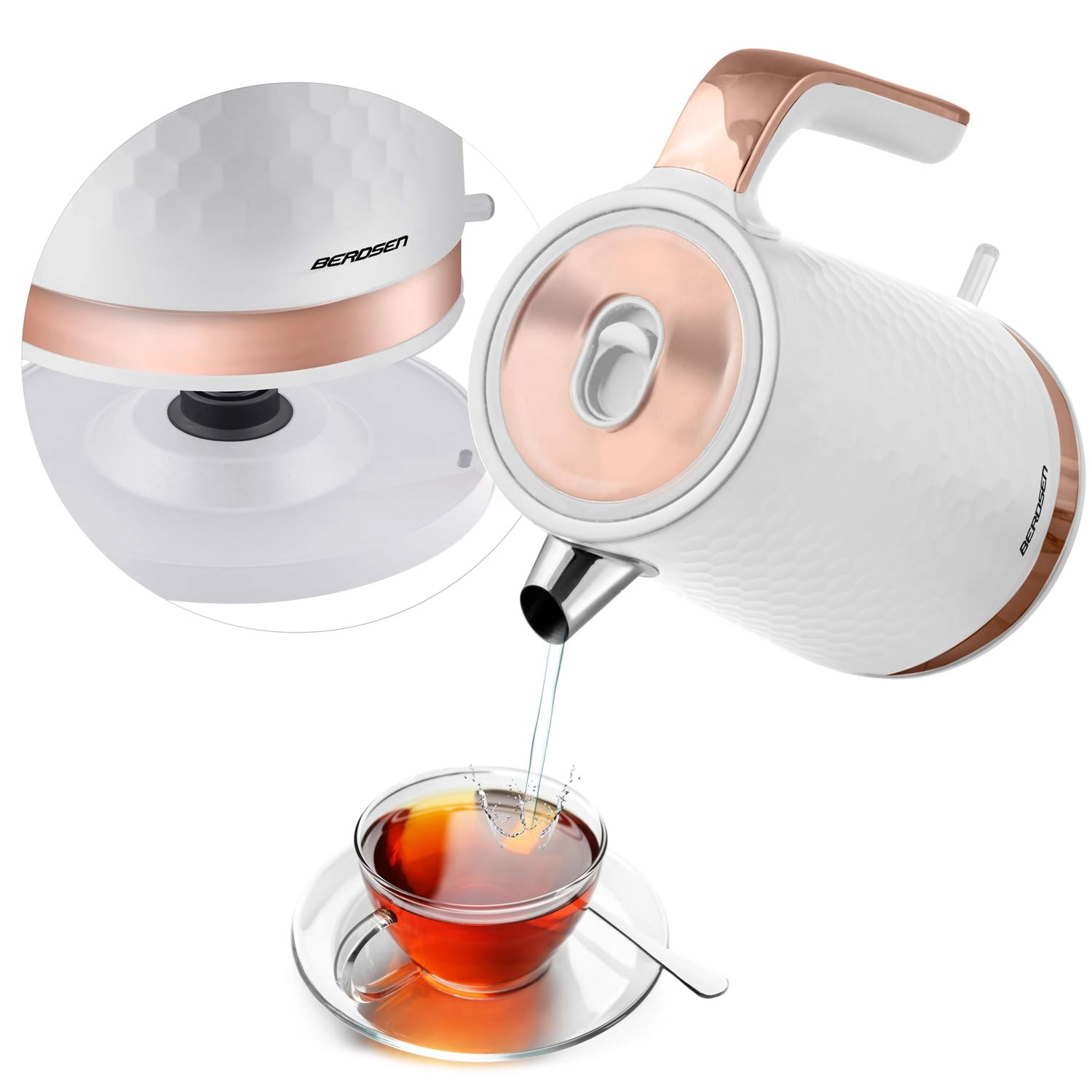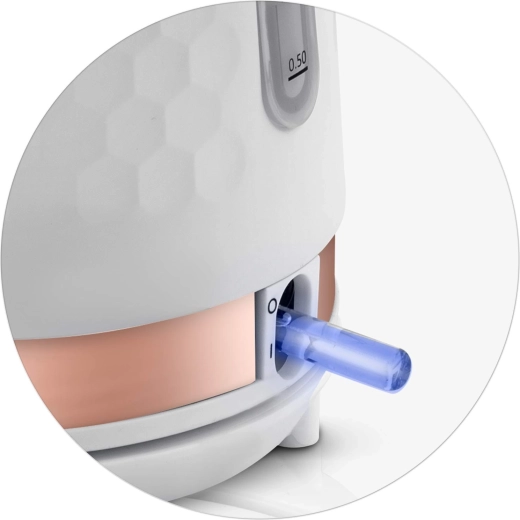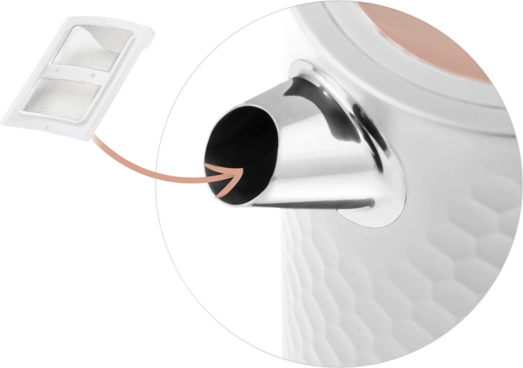 Praktická 360° otočná základna s protiskluzovými nožkami a schováním kabelu zajišťuje komfort pro praváky i leváky. Vyjímatelný antikalový filtr ve výlevce zachytí minerální usazeniny, takže si vychutnáte dokonale čistý čaj i kávu. Ochrana proti chodu na sucho přináší vyšší bezpečnost při používání.