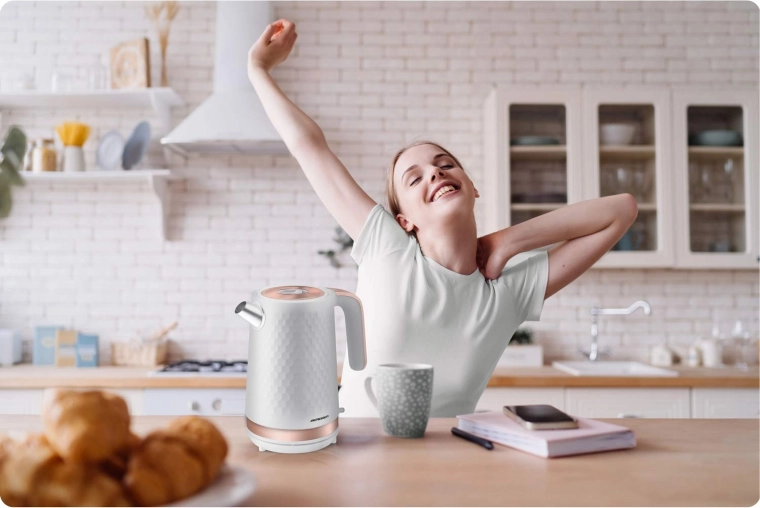 Výkon 1850–2200 W přivede vodu k varu během chvilky. Ideální pro ranní kávu i odpolední čaj bez zbytečného čekání.