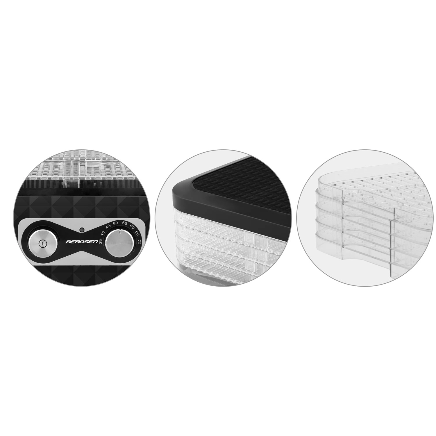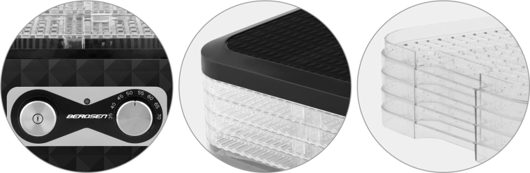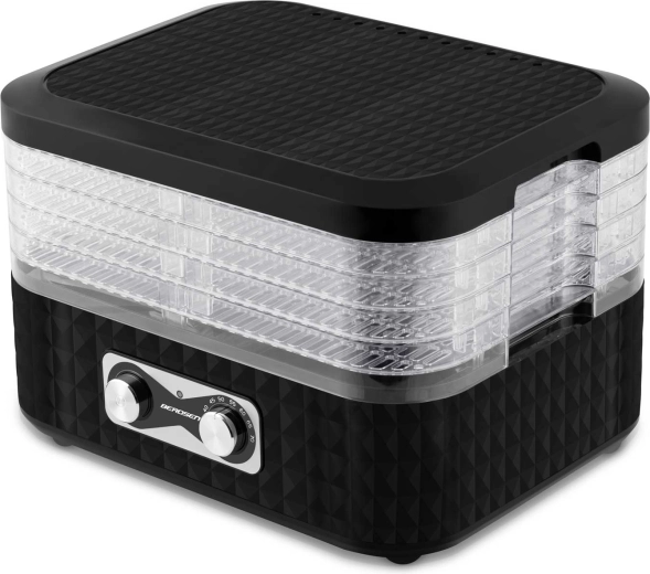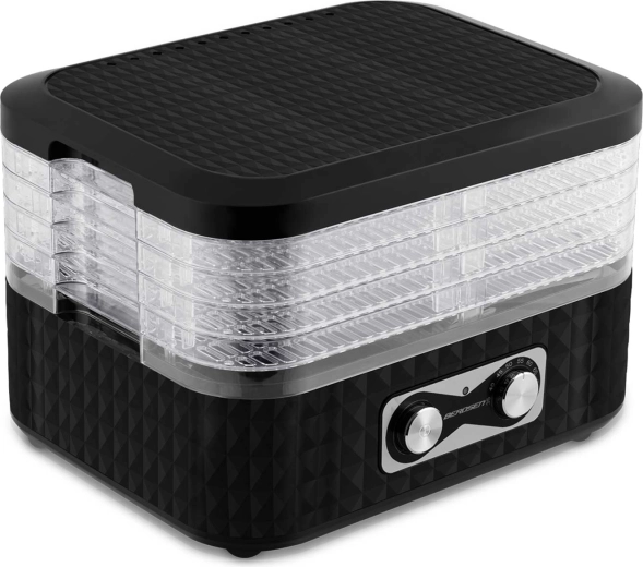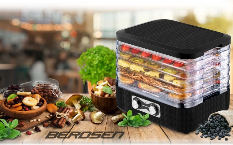 Udělejte si zásoby na celou sezónu. Sušička BERDSEN se snadným ovládáním a průhlednými tácy zajistí rovnoměrné sušení bez připalování. Pět jemných sít brání propadávání drobných kousků, takže bez starostí usušíte bylinky, lesní houby i plátky jahod či jablek.