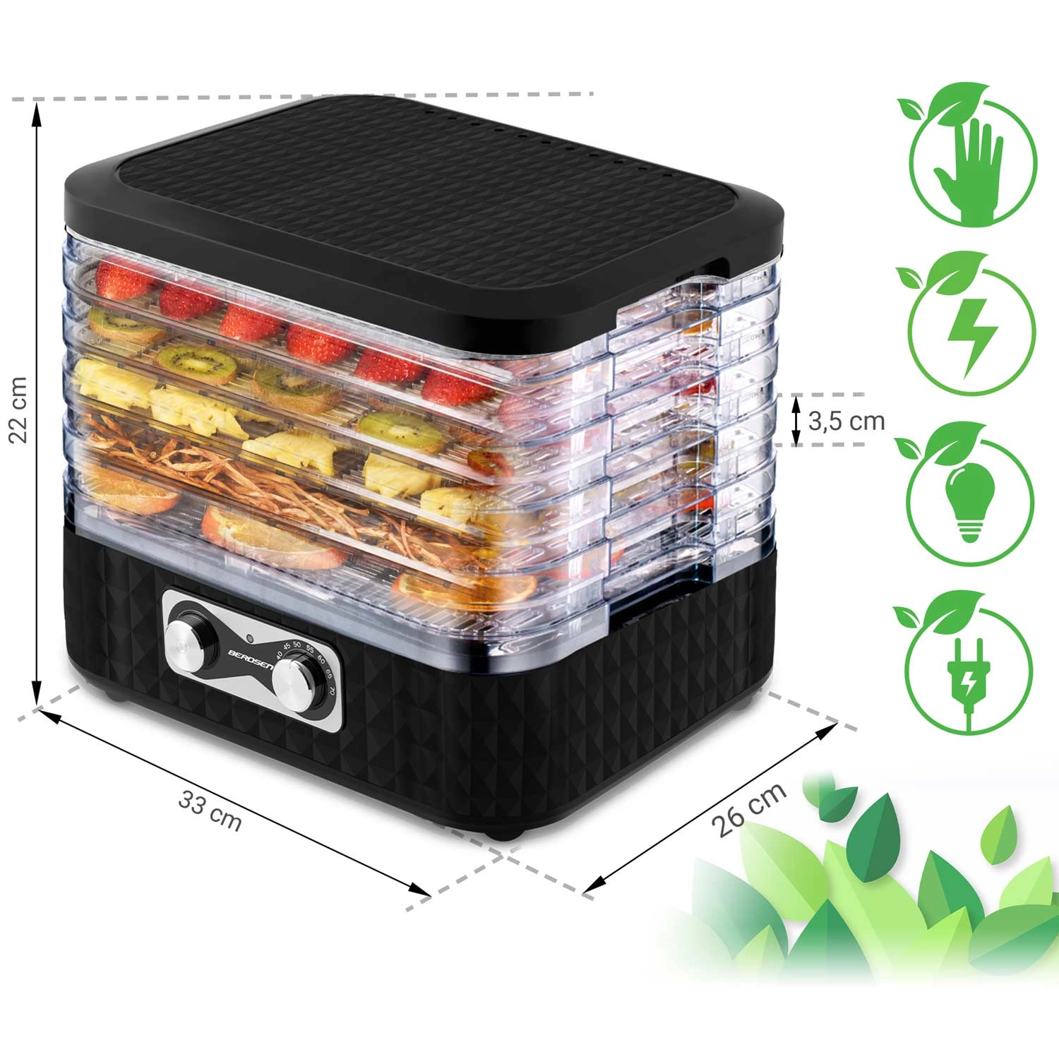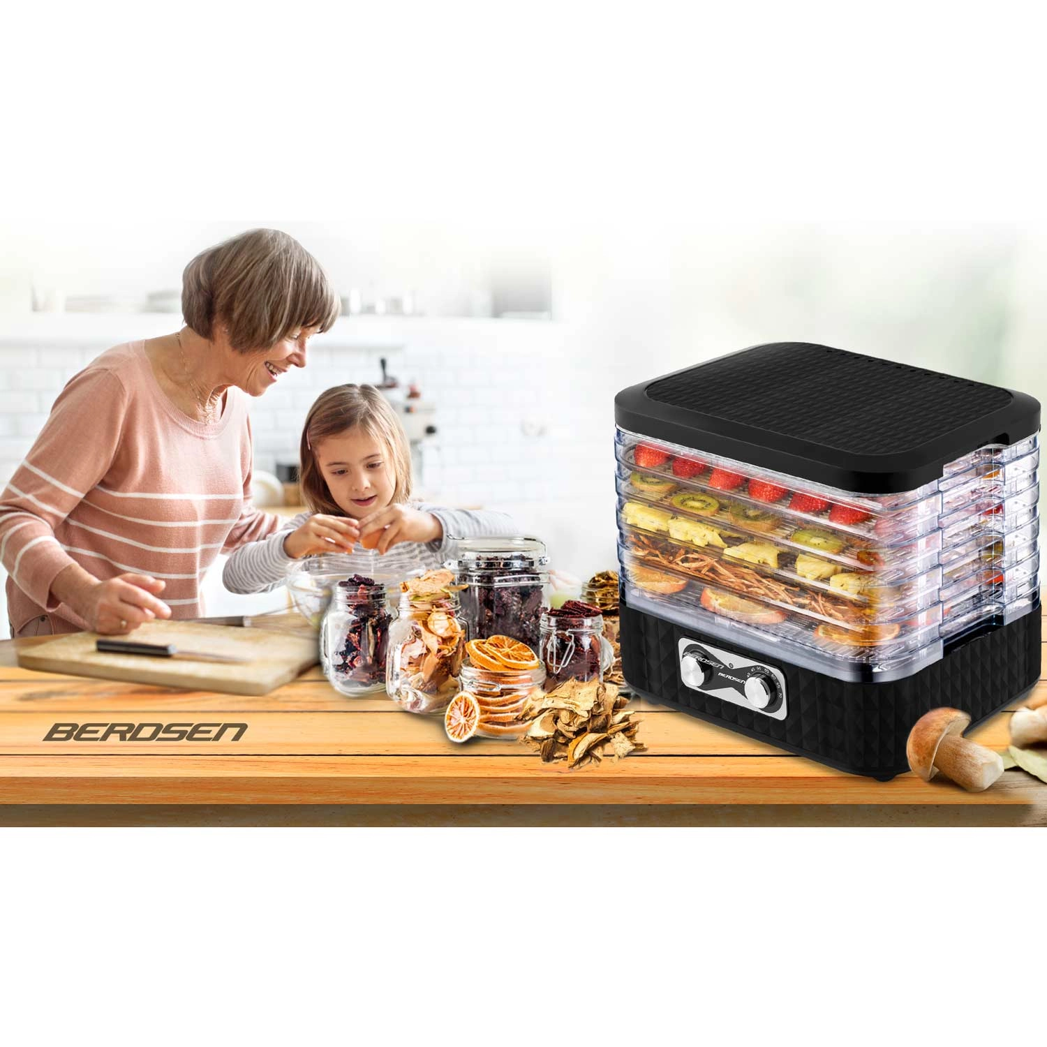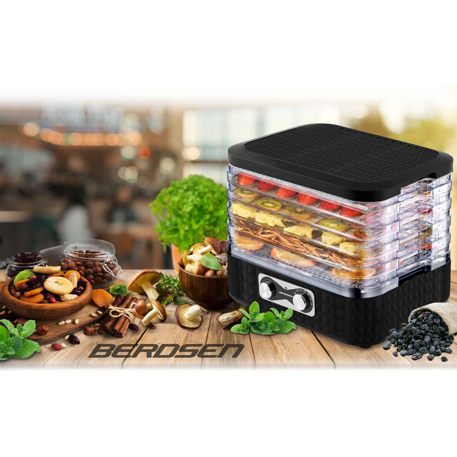Objevte domácí sušení s výkonem 400 W a kapacitou 10 litrů. Sušička potravin BERDSEN nabízí 5 stohovatelných táců, plynulou regulaci teploty 35–70 °C, rovnoměrnou cirkulaci vzduchu a ochranu proti přehřátí. Ideální pro ovoce, zeleninu, bylinky, houby i maso – zdravé snacky po celý rok.