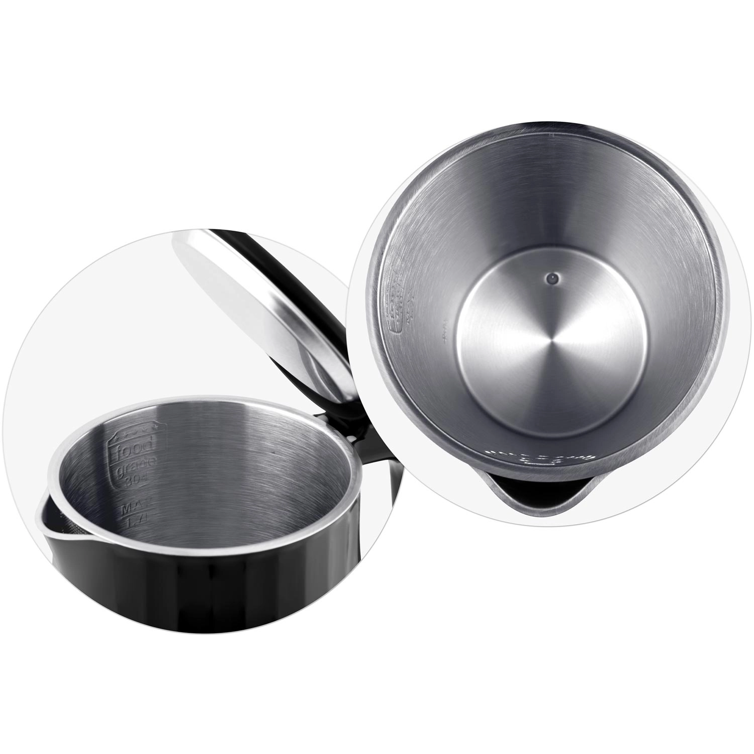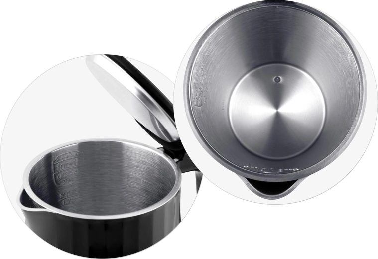 Praktická dvouvrstvá konstrukce CoolTouch omezuje zahřívání pláště, takže konvice je bezpečná na dotek a lépe drží teplo. Vnitřní část z nerezové oceli SUS 304 je hygienická, odolná a bez škodlivého BPA. Otočná základna 360°, tlačítkové otevírání víka a úložný prostor pro kabel zvyšují komfort každodenního používání.
