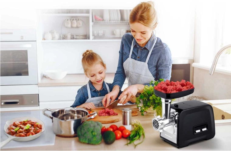 Výkonný elektrický mlýnek na maso Berdsen usnadní každodenní vaření. Nabízí silný motor 450 W (špičkově 1200 W), reverzní chod proti zasekávání, kovový šnek a odolné převody. Díky 3 nerezovým diskům (3/5/7 mm) připravíte jemné i hrubé mletí, domácí klobásy i kebbe. Snadné čištění, bezpečné materiály LFGB & BPA free a kompaktní tělo se schránkou na příslušenství zajistí pohodlné použití i skladování.
