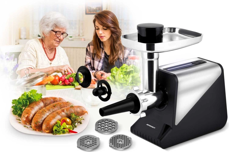 Hledáte spolehlivý a silný mlýnek na maso pro rychlou domácí přípravu oblíbených pokrmů? BERDSEN BD-602 kombinuje vysoký výkon, odolné kovové části a snadnou obsluhu. Tři výměnné kotouče (3 / 5 / 7 mm) vám umožní přesně přizpůsobit strukturu mletí.