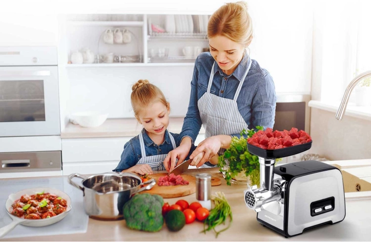 Tři síťky umožní jemné, střední i hrubé mletí. Ideální pro sekanou, masové kuličky, lasagne i paštiky.