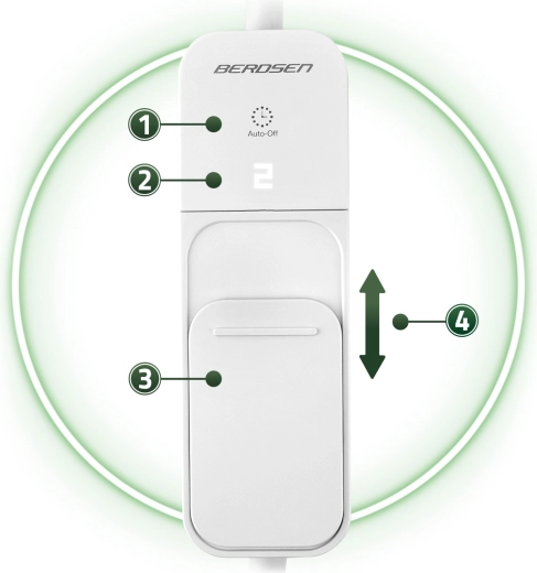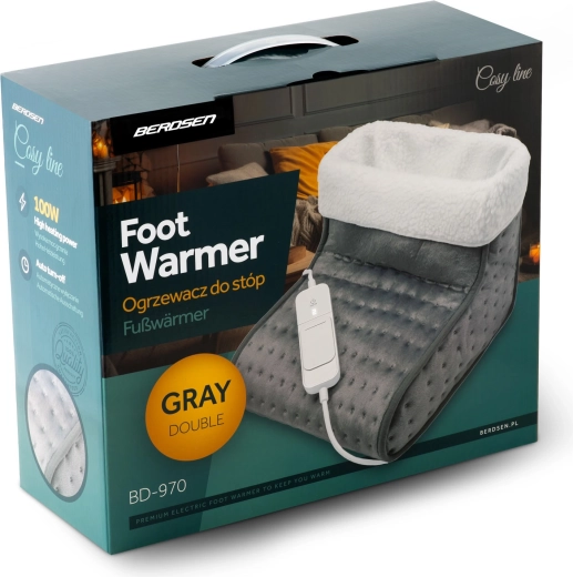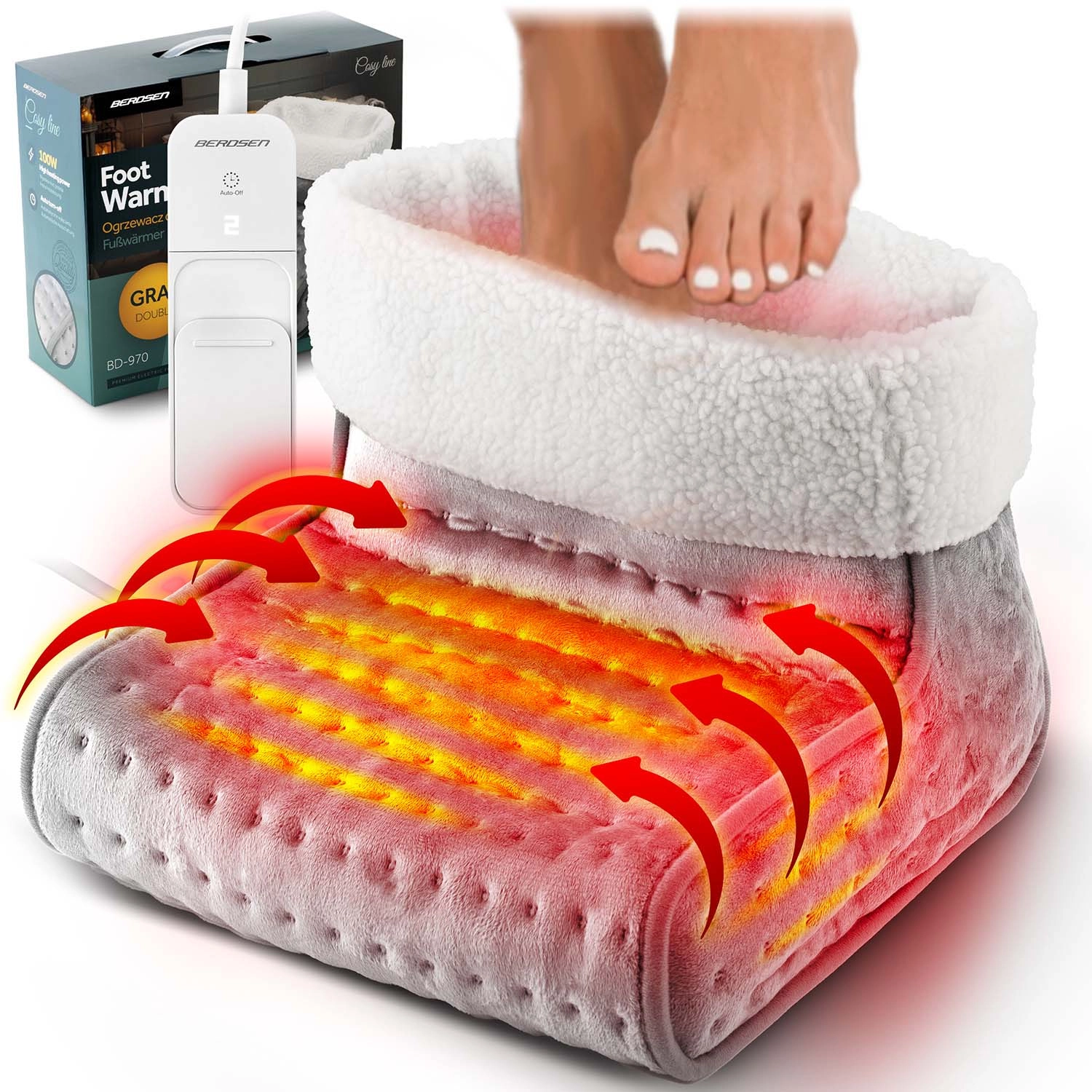 Ohřívač nohou BERDSEN je ideální společník pro dlouhé zimní večery, práci u počítače i relax u televize. Výkonné a rovnoměrné tepelné rozložení zajišťuje trojvrstvá konstrukce s hustým plyšem a izolační vrstvou, zatímco prostorný otvor s hebkým lemem pohodlně pojme obě chodidla. Ovládání je intuitivní – tři teplotní stupně (39/42/45 °C) snadno nastavíte na podsvíceném LCD ovladači.