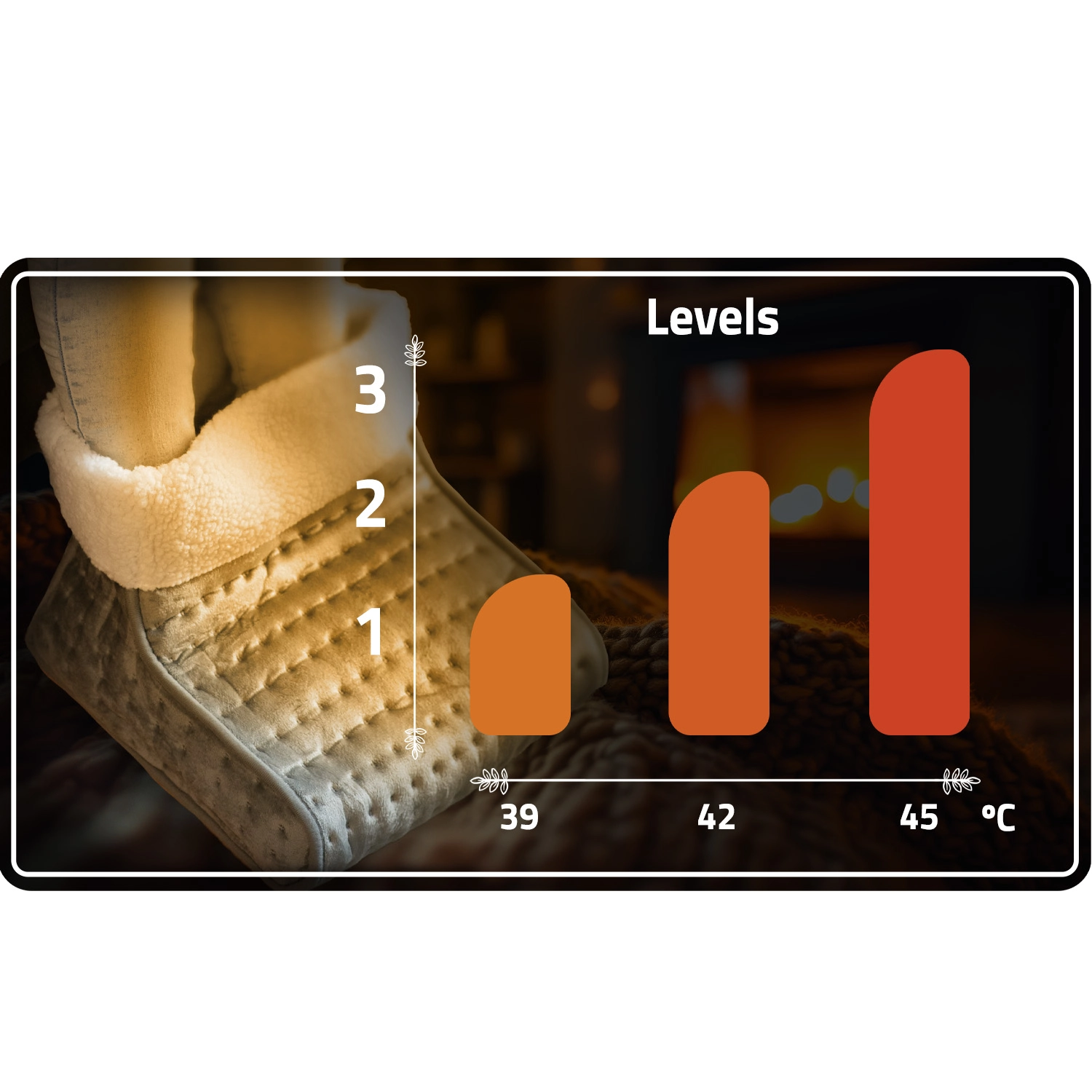 Pro maximální bezpečí má přístroj automatické vypnutí po 90 minutách a ochranu proti přehřátí. Díky rychlému náběhu teploty (cca 2 min) poskytne okamžitou úlevu pro zmrzlé nohy, uvolní napětí a podpoří relaxaci po náročném dni.