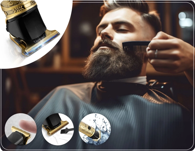 Ergonomické, kompaktní tělo s kovovým zdobením skvěle padne do ruky a tichý chod motoru zvyšuje komfort při ranním i večerním použití. Ideální pro domácí úpravu vlasů, vousů i knírů – s výsledkem, který vypadá profesionálně.