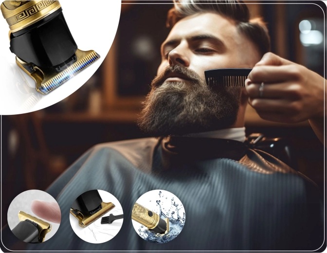 Pro pohodlné domácí stříhání i barber styling využijete 6 vodicích hřebenů (1,5–9 mm), které umožní plynulé přechody, fade a úpravu vousů do čistých tvarů. Li‑Ion baterie 1800 mAh zajistí až 2,5 hodiny práce, zatímco USB‑C nabíjení doplní energii přibližně za 3,5 hodiny. Praktický LED/LCD ukazatel informuje o zbývajícím čase a stavu baterie, takže máte vše pod kontrolou.