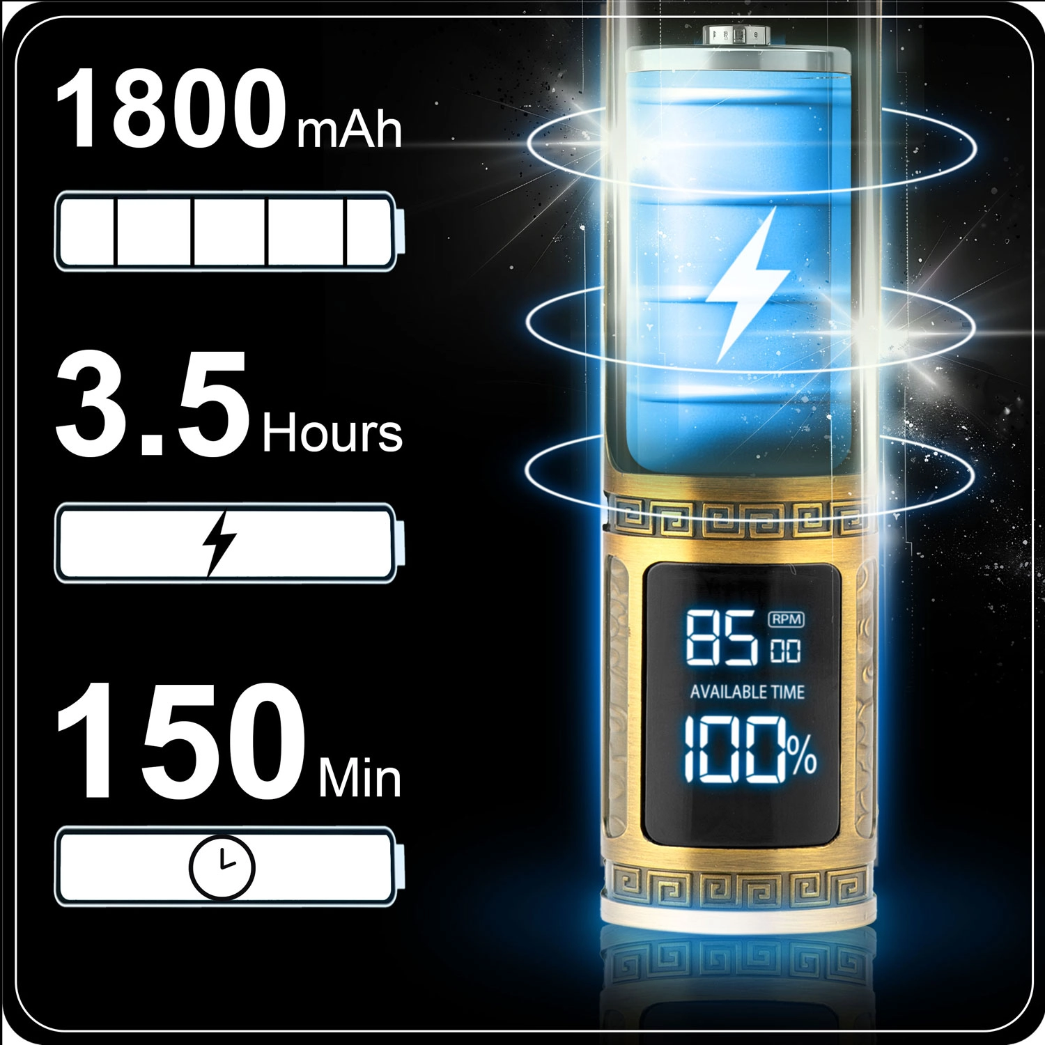 Sledujte zbývající čas a stav baterie na přehledném LCD. Li‑Ion 1800 mAh poskytne až 2,5 hodiny provozu – ideální pro kompletní úpravu vlasů i vousů.