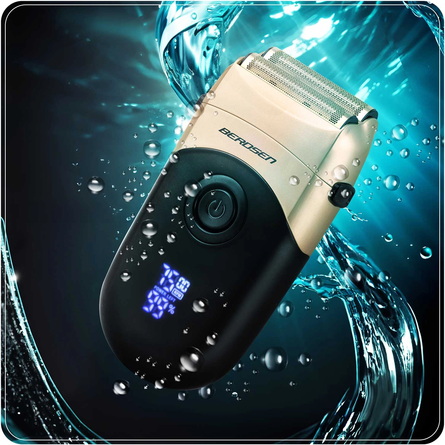 Fóliový holicí strojek BERDSEN černo‑zlatý s LCD displejem