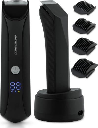 Univerzální zastřihovač BERDSEN Barber Master je ideální pro každodenní úpravu vlasů i vousů. Nabízí ostré ocelové ostří pro přesný střih, LCD displej s ukazatelem baterie a funkcemi zámku, výkonný motor pro plynulý chod a až 90 minut bezdrátového provozu. V balení najdete 4 hřebenové nástavce 3–12 mm, nabíjecí stojánek, USB‑C kabel a čisticí kartáček.