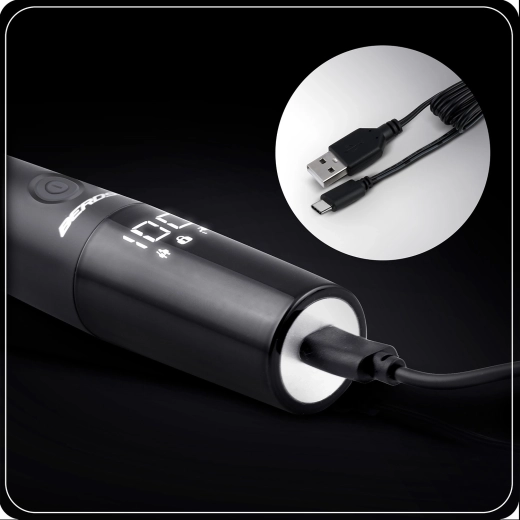 Li‑Ion baterie s kapacitou 600 mAh nabízí až 120 minut provozu na jedno nabití a USB‑C rychlonabíjení doplní energii za pouhé 2 hodiny. Funkce Travel Lock brání nechtěnému zapnutí při cestování, takže je ideální do tašky či kufru.