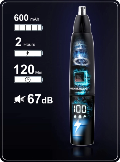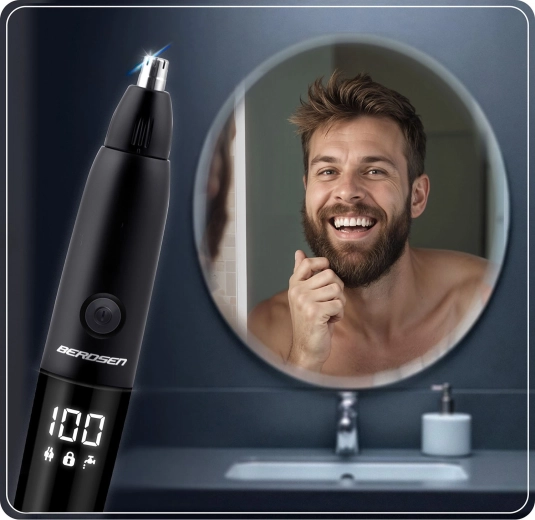BERDSEN BD‑269 je všestranný zastřihovač 3v1 pro nos, uši a detailní úpravy vousů. Ocelové dvojité břity zajišťují hladký a přesný střih bez rizika zadrhávání. Integrovaný LCD displej zobrazuje stav baterie a otáčky pro plnou kontrolu nad úpravou vzhledu.