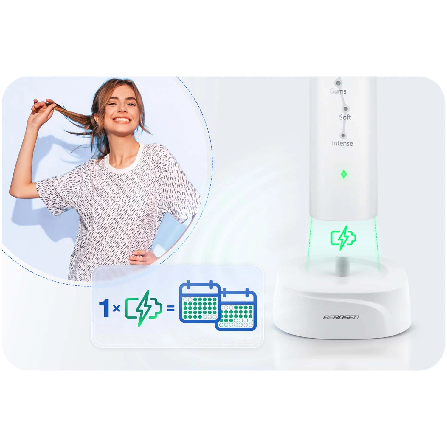 Berdsen Galaxy využívá pokročilou sonickou technologii, která jemně, ale mimořádně účinně rozrušuje zubní plak a dosahuje i do těžko dostupných míst. Inovativní hlavice s jemnými štětinami kopíruje tvar zubu a zadní strana poslouží k čištění jazyka pro svěží dech. Výsledkem je bělejší úsměv během několika týdnů a až 6× účinnější odstranění povlaků než u běžných manuálních kartáčků.