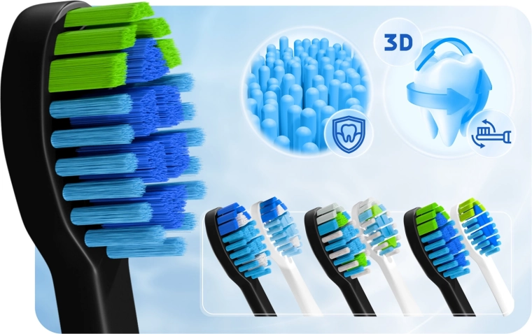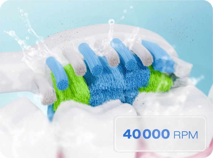 Sonická technologie kartáčků Berdsen GALAXY proniká i do těžko dostupných míst a pomáhá odstranit až 6× více plaku než běžné manuální kartáčky. Inovativní uspořádání vláken se přesně přizpůsobí tvaru zubů a zadní strana hlavice poslouží k rychlému čištění jazyka pro svěží dech.