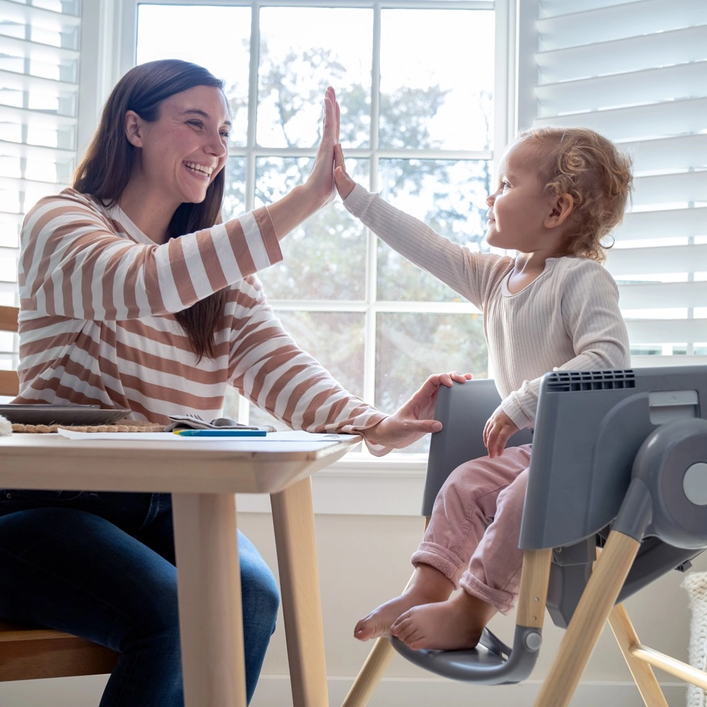Rodiče ocení pultík se 3 polohami s držákem nápoje a vyjímatelnou vložkou do myčky, pratelné potahy a bezpečnostní pásy, které se přizpůsobí věku dítěte. Variabilní výška a pohodlná opěrka nohou podporují zdravé sezení v úhlu 90/90/90, aby nohy nevisely a dítě sedělo stabilně u stolu.