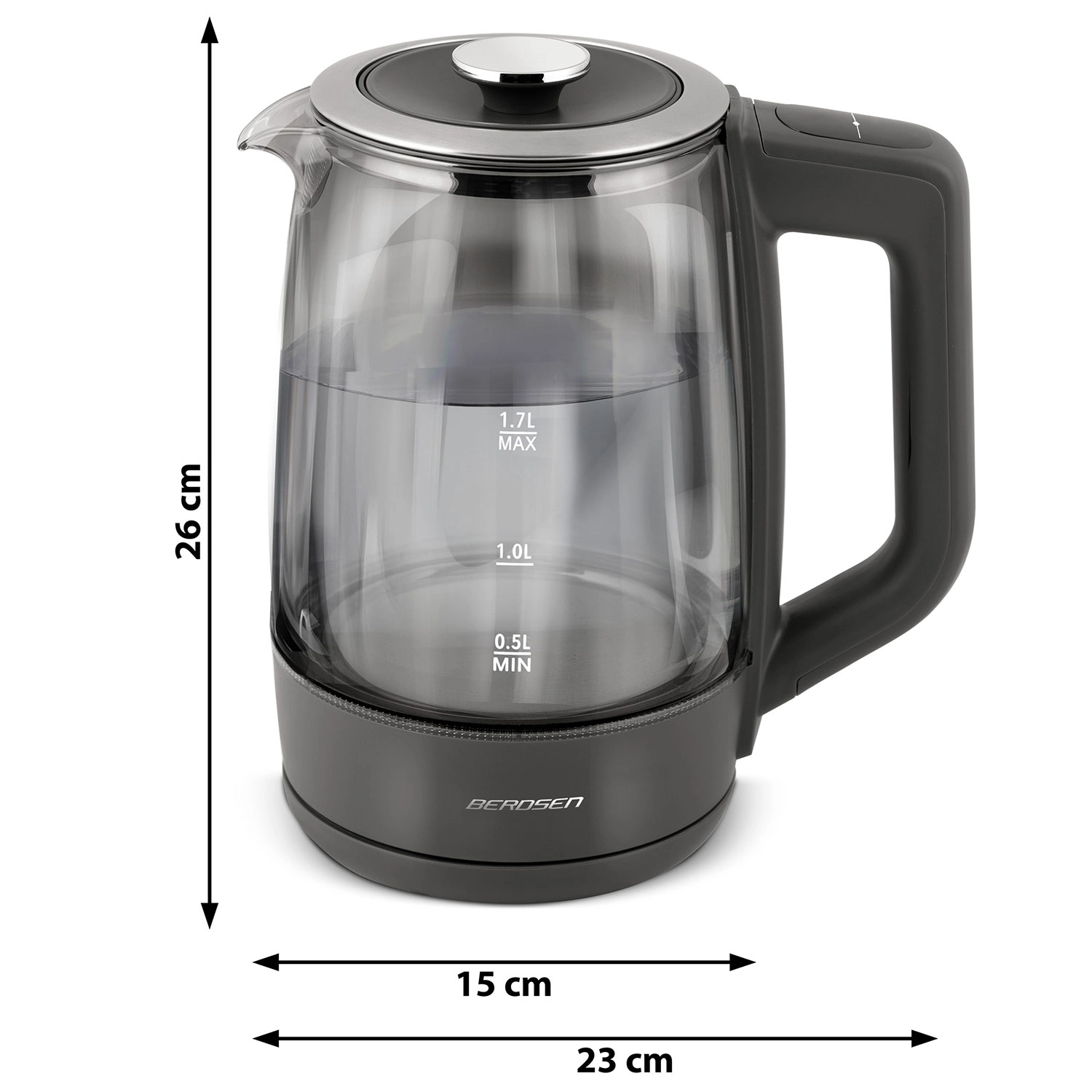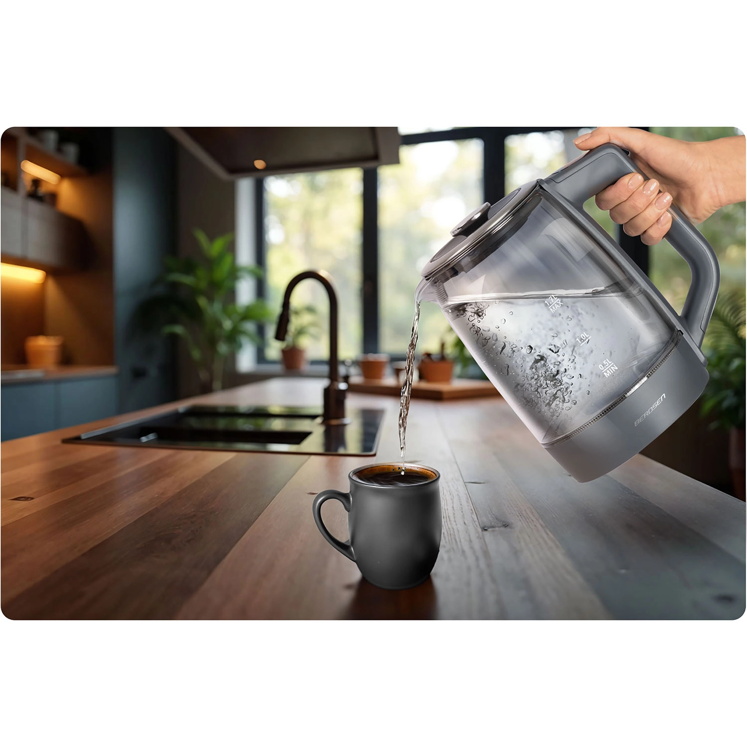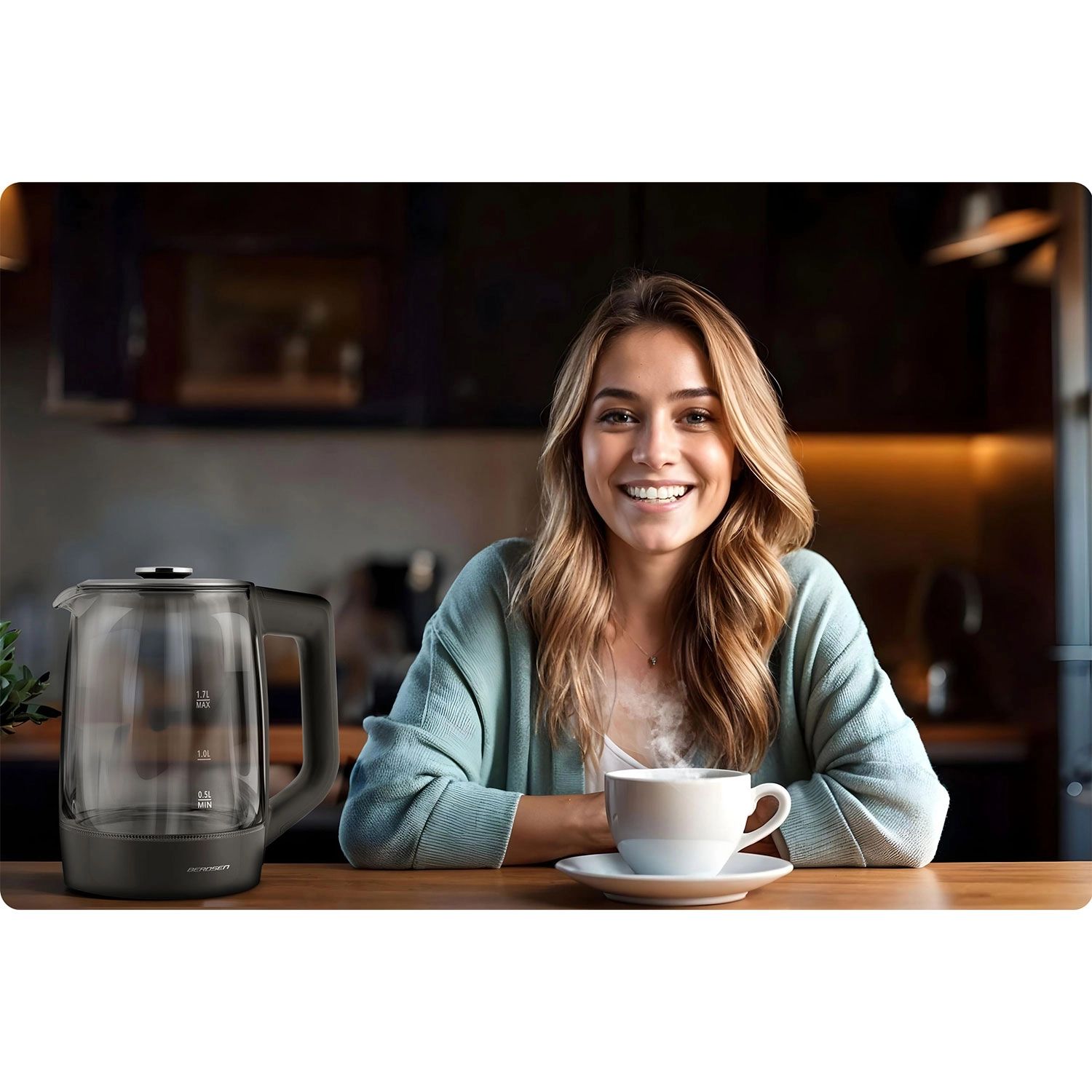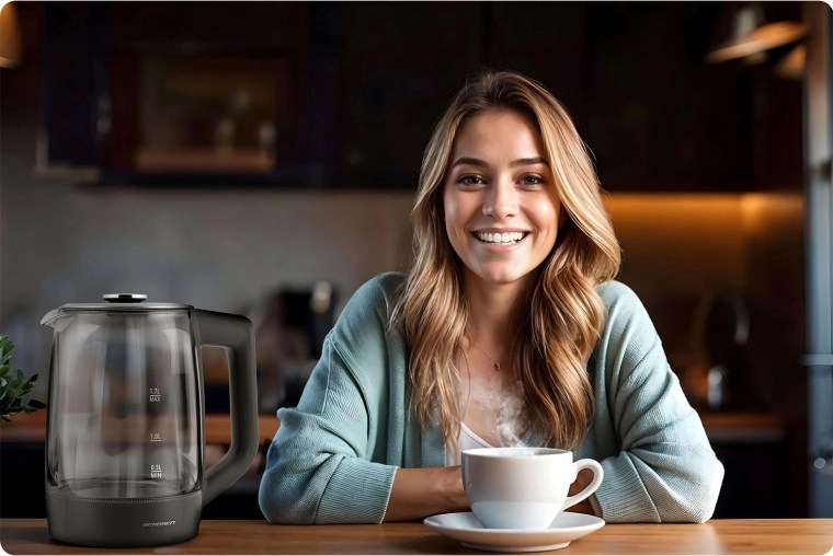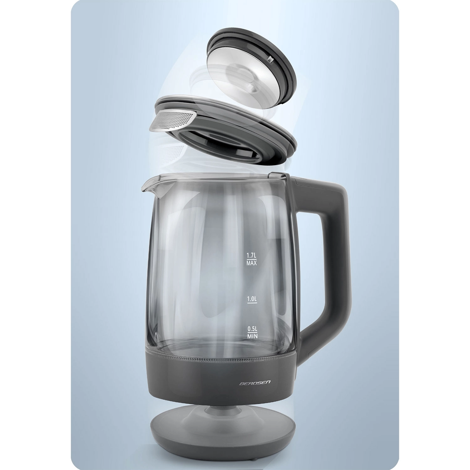 Objevte elegantní skleněnou rychlovarnou konvici BERDSEN 1,7 l se smart měřením teploty, dotykovým ovládáním a pětistupňovým nastavením teplot 40/55/80/90/100 °C. Odolné borosilikátové sklo, modré LED podsvícení při varu a funkce Keep Warm až 2 hodiny z ní dělají ideální volbu pro čaj, kávu i nápoje pro děti. Bezpečný provoz zajišťuje ochrana proti chodu nasucho a spolehlivá elektronika Powered by Strix.