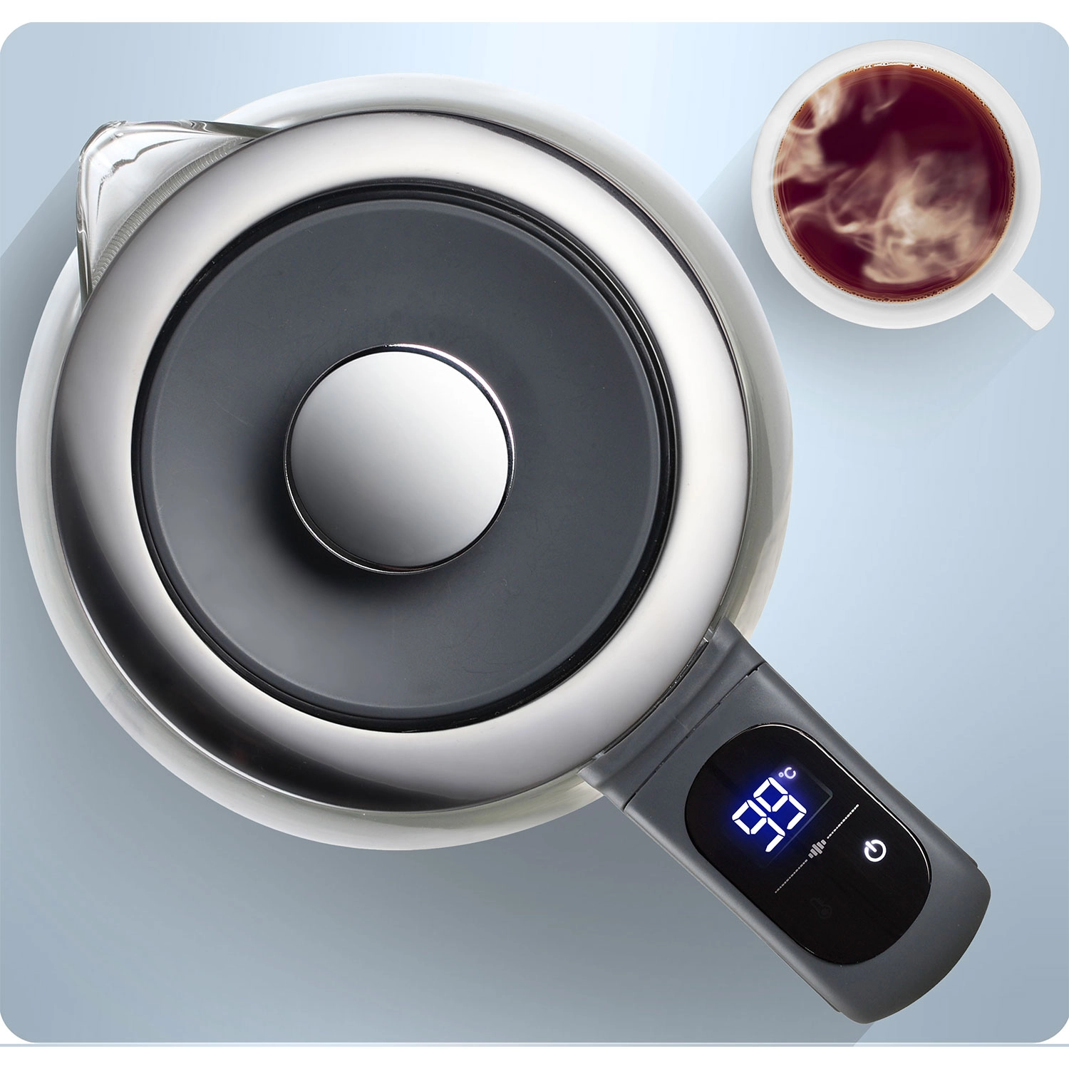Zvolte 40/55/80/90/100 °C jedním dotykem a připravte perfektní zelený čaj, filtrovanou kávu i dětské nápoje. Integrovaný senzor průběžně ukazuje aktuální teplotu.
