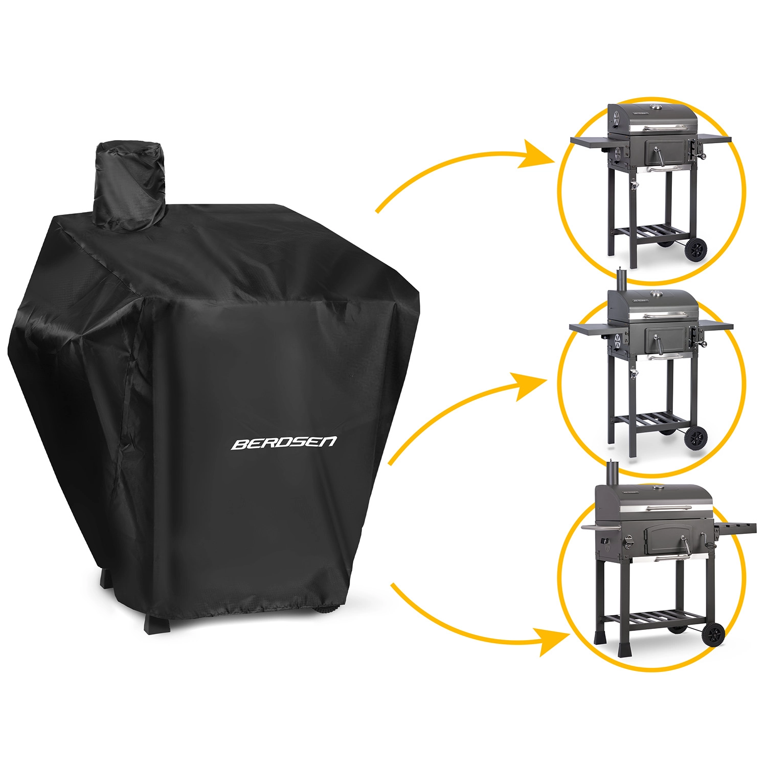Praktický a odolný obal na gril BERDSEN BBQChef chrání váš zahradní gril před nepříznivým počasím a nečistotami. Vyroben z pevného materiálu 210D OXFORD s polyuretanovým zátěrem 110 g, je 100% voděodolný, opatřen UV ochranou a snadno se udržuje. Díky nízké hmotnosti se snadno nasazuje i sundává a pomáhá prodloužit životnost grilu.
