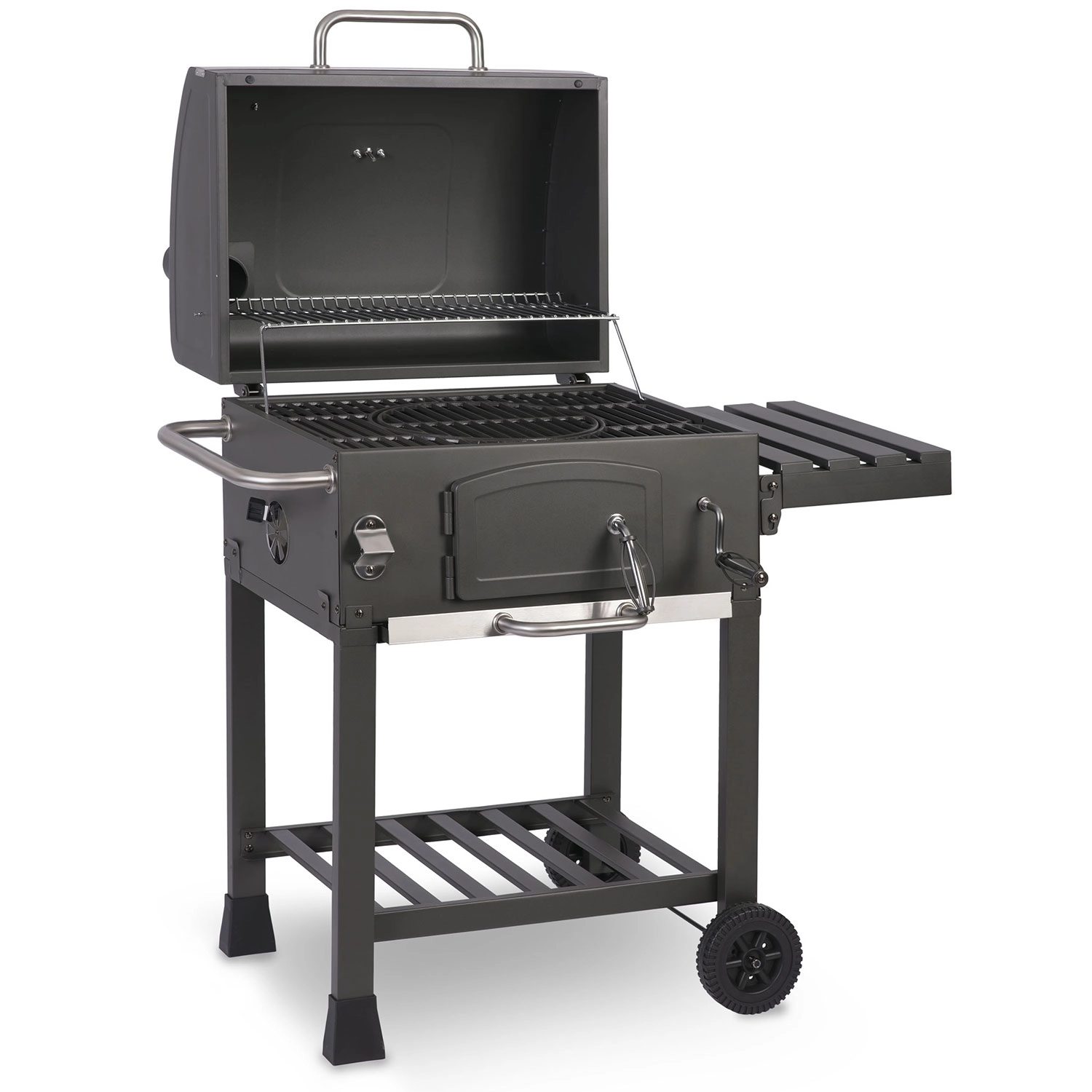 Vestavěný teploměr, regulovatelný přívod vzduchu a nastavitelná výška paleniska vám umožní přesně řídit žár podle typu pokrmu – od pomalého zauzování po prudké opékání.