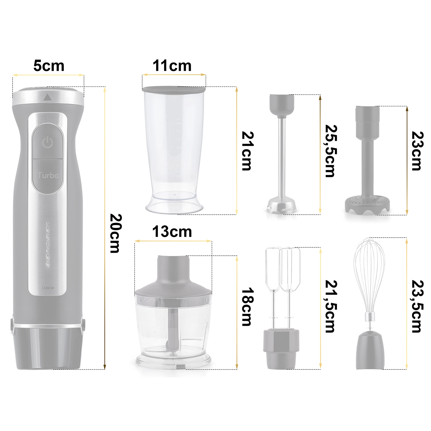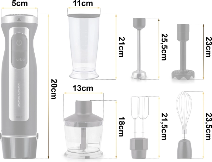Tyčový mixér 1500 W s titanovým nožem a příslušenstvím BERDSEN
