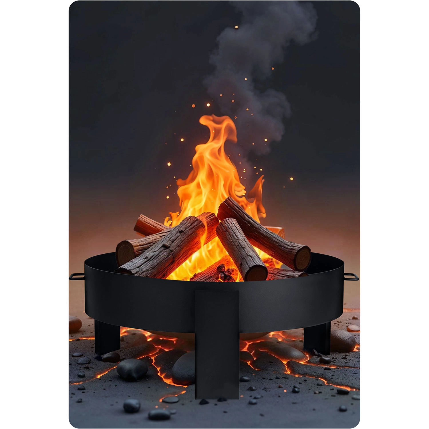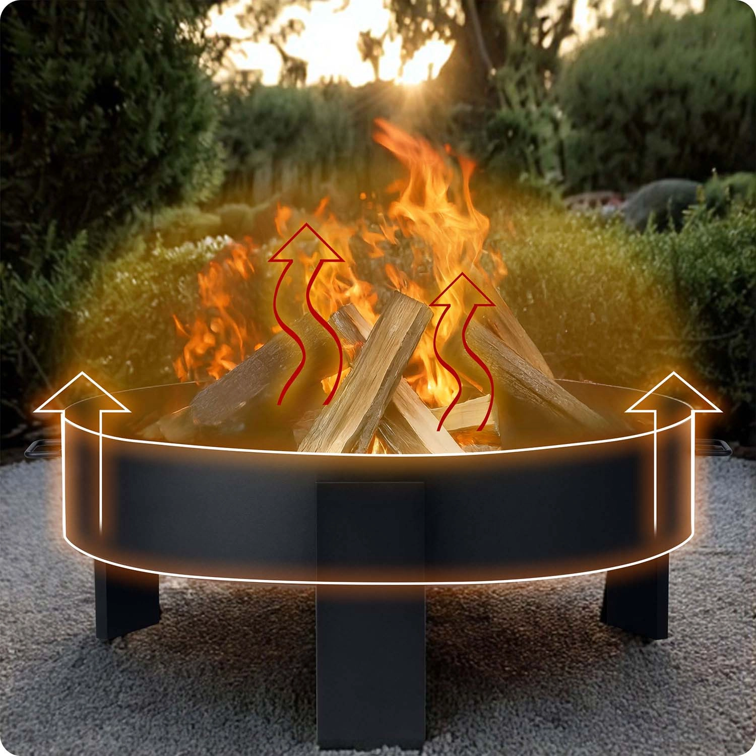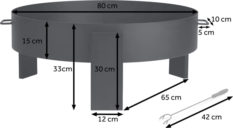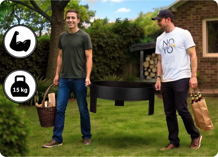 Masivní ocelová konstrukce z 2mm plechu stojí pevně na třech nohách a zajišťuje stabilitu a bezpečnost. Boční madla usnadňují přenášení a v balení navíc najdete poker s rukojetí pro pohodlnou manipulaci s poleny. Minimalistický, univerzální design se hodí do moderních i tradičních zahrad a snadno zapadne do jakéhokoli stylu exteriéru.