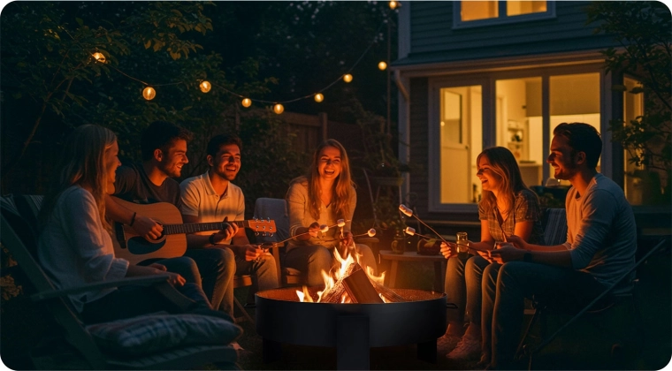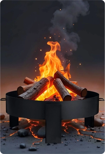 Silnostěnná ocel 2 mm s práškovým lakem odolává korozi, poškrábání i UV záření. Ohniště zvládá vysoké teploty až 600 ℃ a je připravené na celoroční venkovní použití.