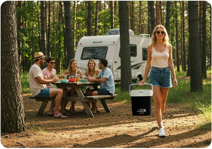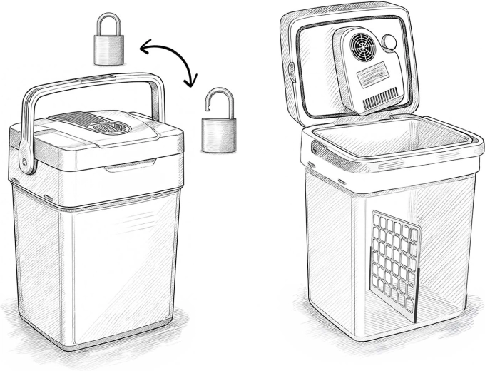 Díky duálnímu napájení 12 V / 230 V ji využijete v autě i doma. Dvojité stěny a aktivní ventilátor zajišťují rovnoměrnou cirkulaci vzduchu a stabilní teplotu. Promyšlené detaily jako skládací rukojeť, blokace víka při přenášení, opěrná funkce rukojeti při plnění a vyjímatelná dělicí mřížka zvyšují komfort i bezpečnost.
