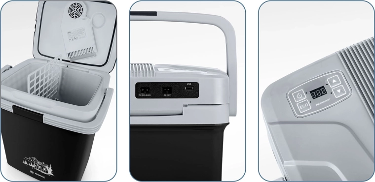 Tato kompaktní a výkonná přenosná autochladnička je ideální volbou pro dovolenou, piknik, rybaření i dlouhé cesty autem. Nabízí přesné elektronické ovládání teploty s přehledným displejem, režimy ECO a Normal pro úsporu energie a účinné chlazení až o 18 °C pod okolní teplotu. Pro univerzální použití zvládne také ohřev až na 65 °C.