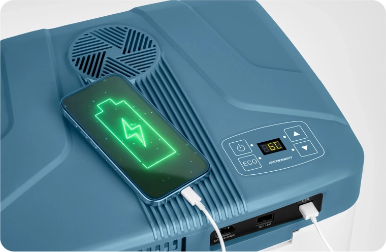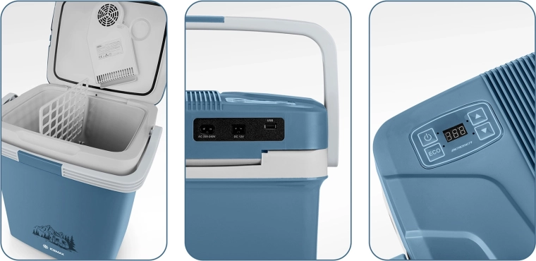 Lehká a kompaktní autochladnička o objemu 26 litrů s digitálním ovládáním teploty, dvěma režimy ECO/Normal a funkcí chlazení až o 18 °C pod okolí. Díky napájení 12 V i 230 V, tichému chodu a USB výstupu je ideální na cesty autem, na pláž i kempování.