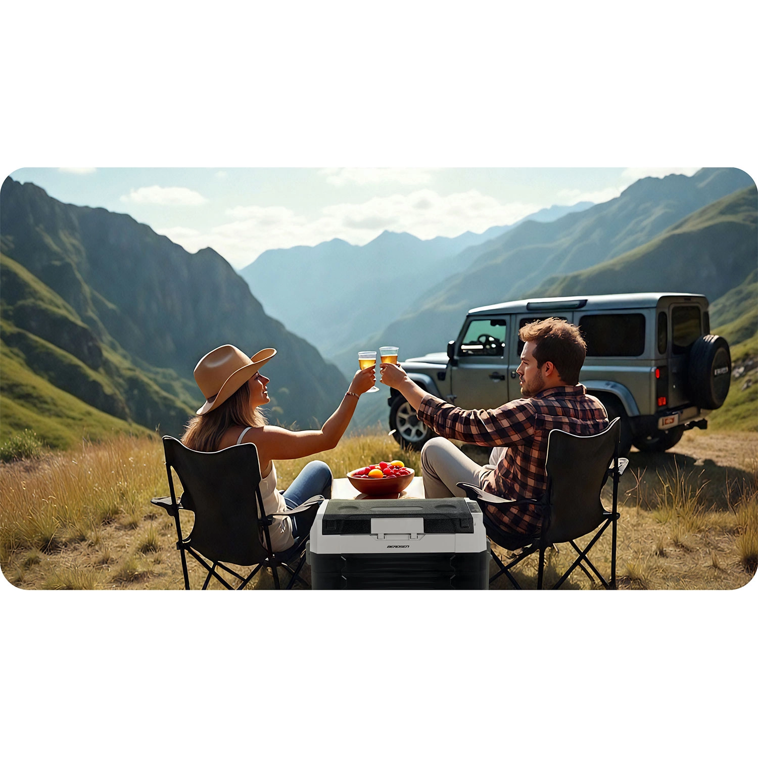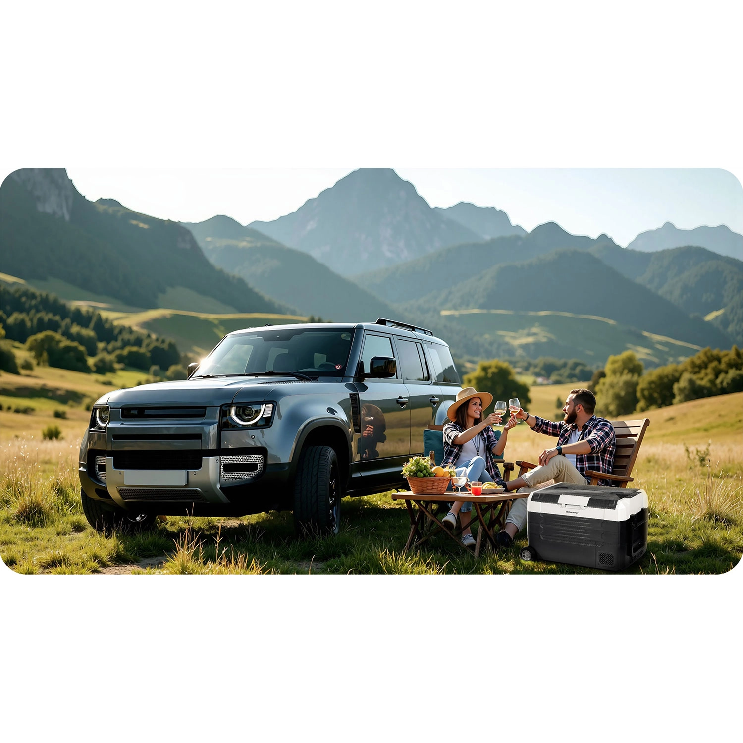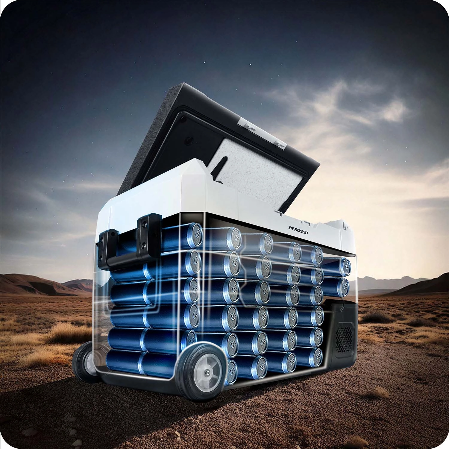 Užijte si spolehlivé chlazení na cestách s kompresorovou chladničkou BERDSEN Icemax 400. Dvě oddělené komory umožní současně chladit i mrazit, a to s přesným nastavením na -20 °C až +20 °C. Výkonný kompresor zvládne přechod z 20 °C na 0 °C přibližně za 15 minut, zatímco tichý provoz 45 dB neruší odpočinek na kempu ani v kabině vozu.