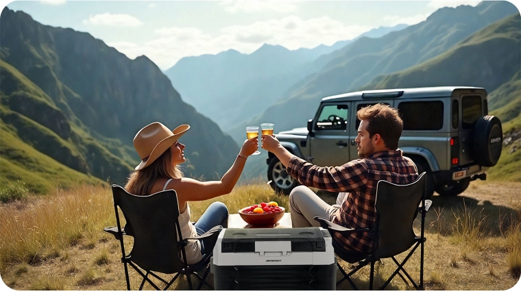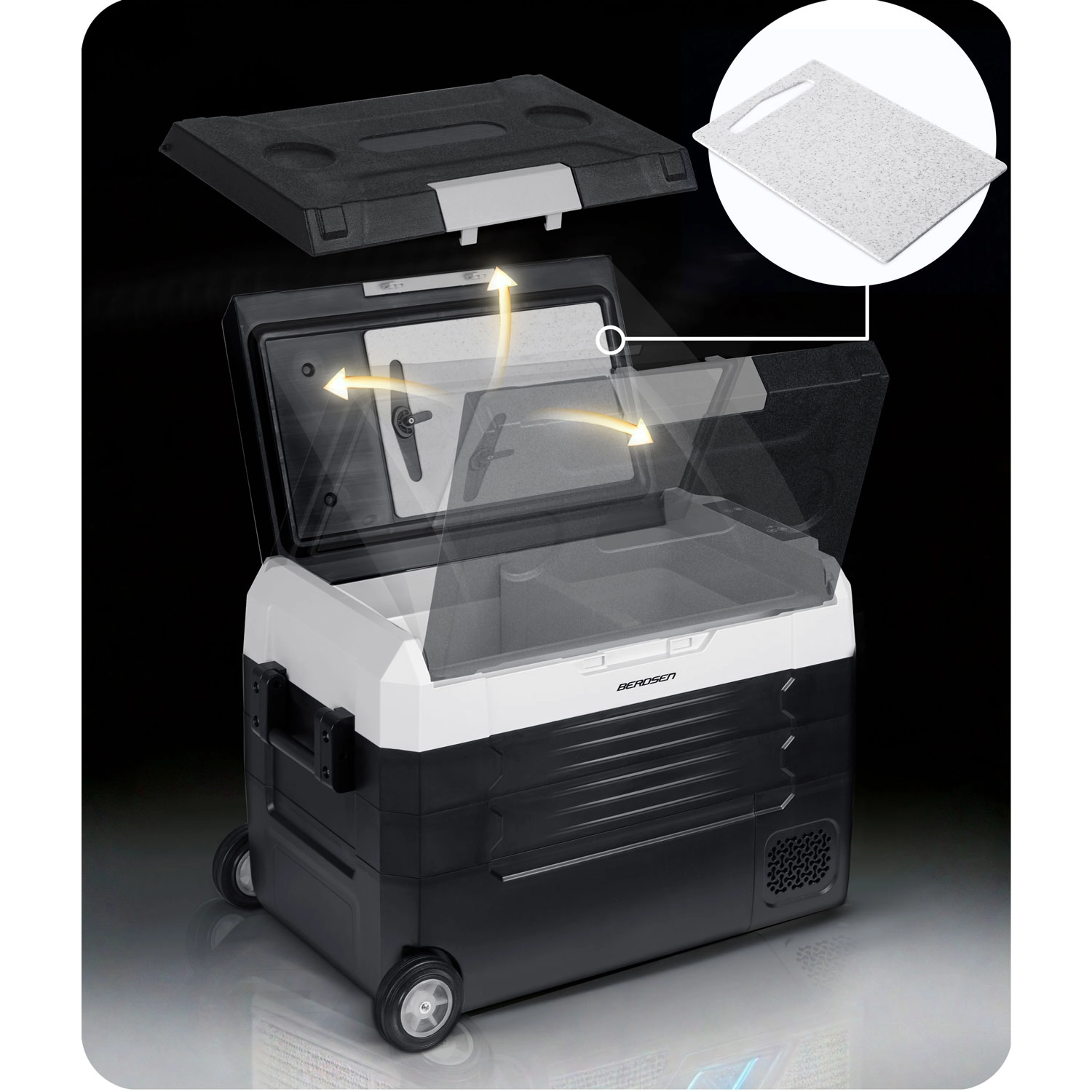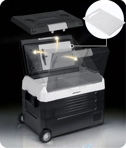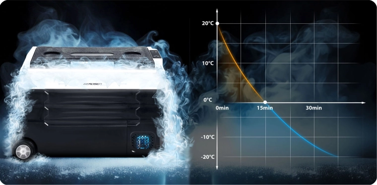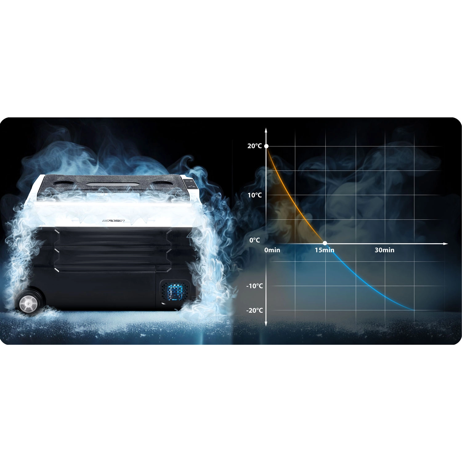 Užijte si spolehlivé chlazení na cestách s kompresorovou chladničkou BERDSEN Icemax 400. Dvě oddělené komory umožní současně chladit i mrazit, a to s přesným nastavením na -20 °C až +20 °C. Výkonný kompresor zvládne přechod z 20 °C na 0 °C přibližně za 15 minut, zatímco tichý provoz 45 dB neruší odpočinek na kempu ani v kabině vozu.