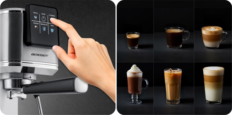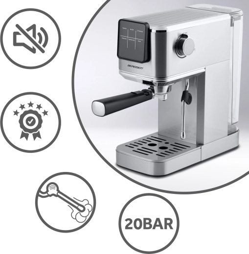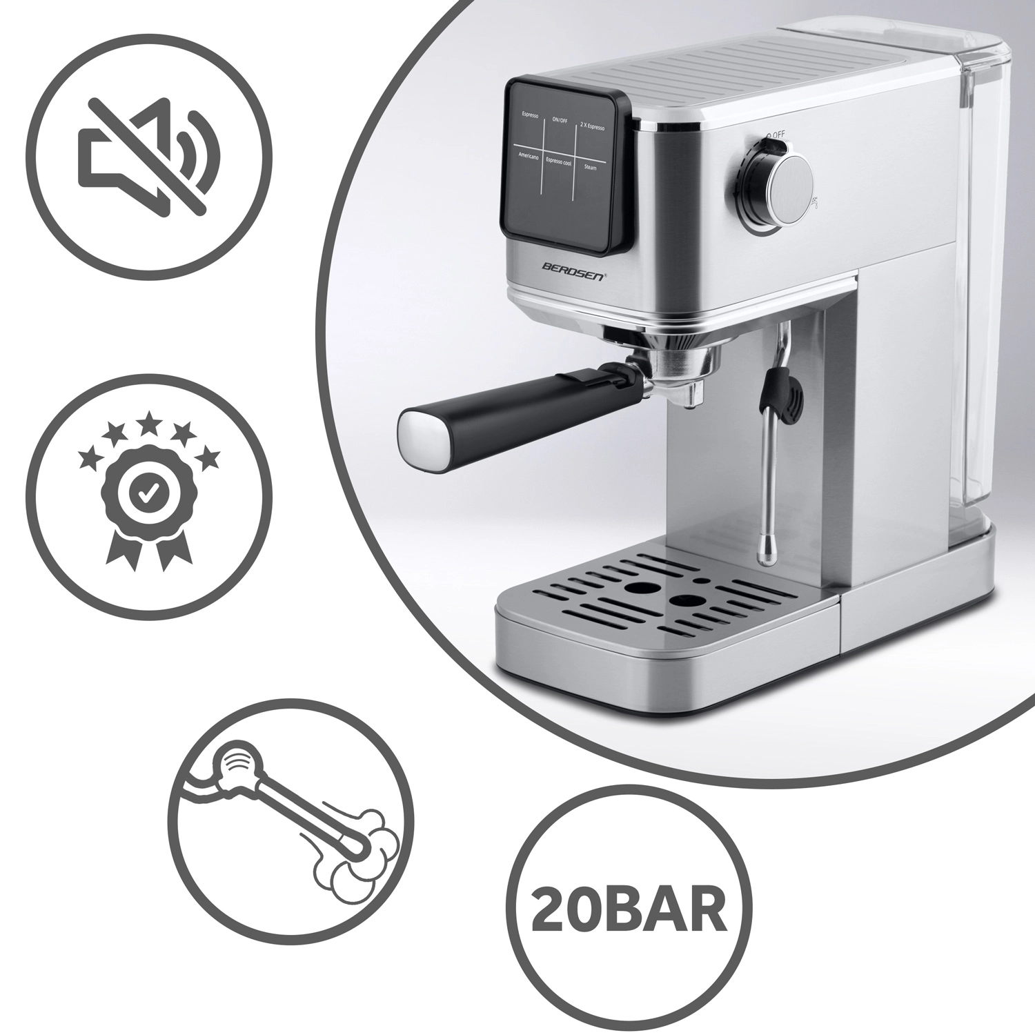 Proměňte svou kuchyň v domácí kavárnu. Pákový kávovar BERDSEN s tlakem 20 bar a přesným systémem extrakce vytěží z čerstvě mleté kávy maximum chuti a vůně. Dotykové ovládání umožní rychlou volbu espressa, cappuccina, latte nebo americana – a díky funkci cold espresso během chvilky připravíte osvěžující iced latte či espresso tonic.