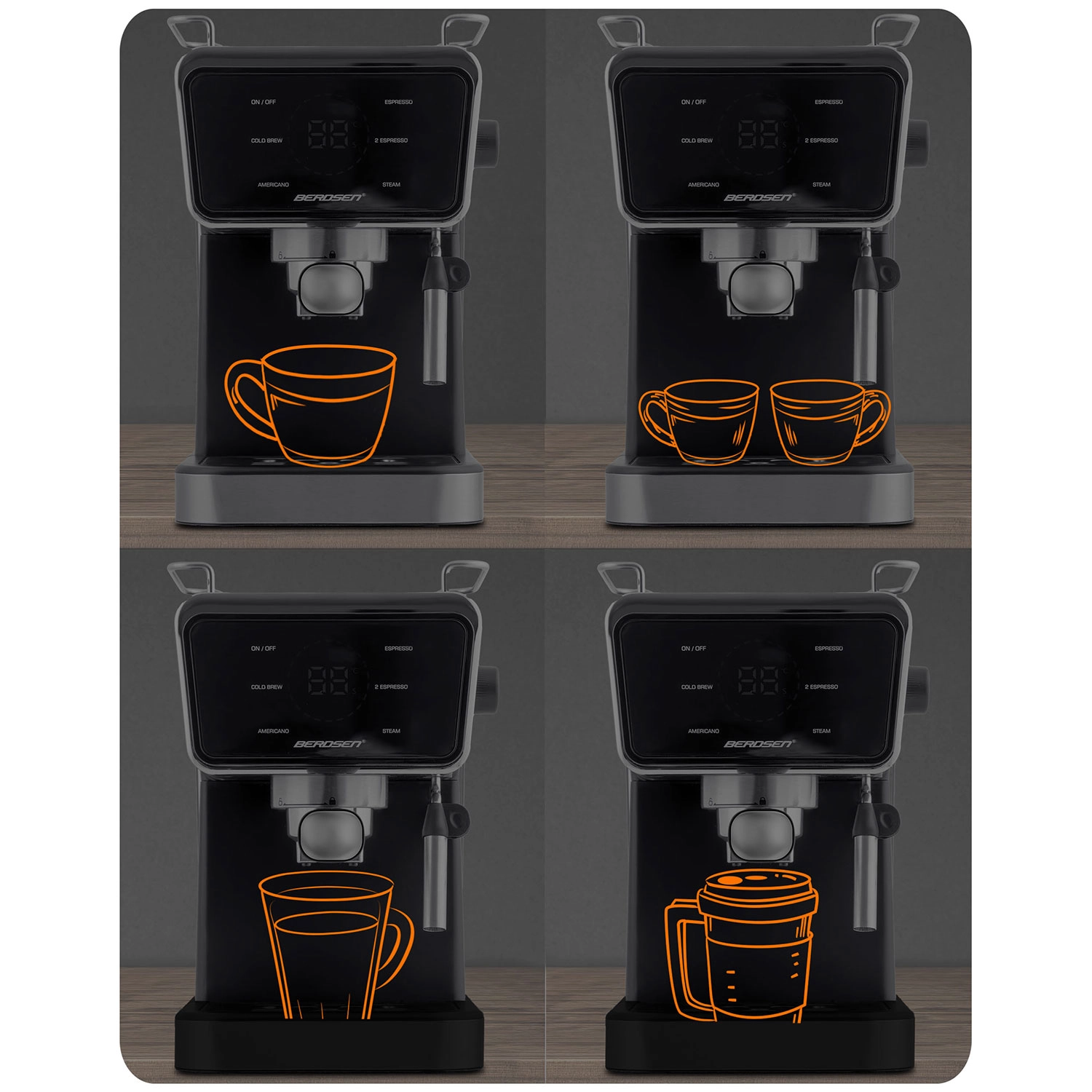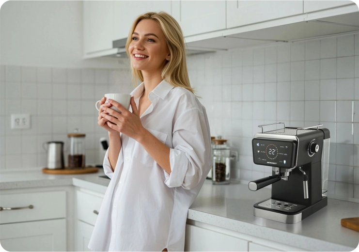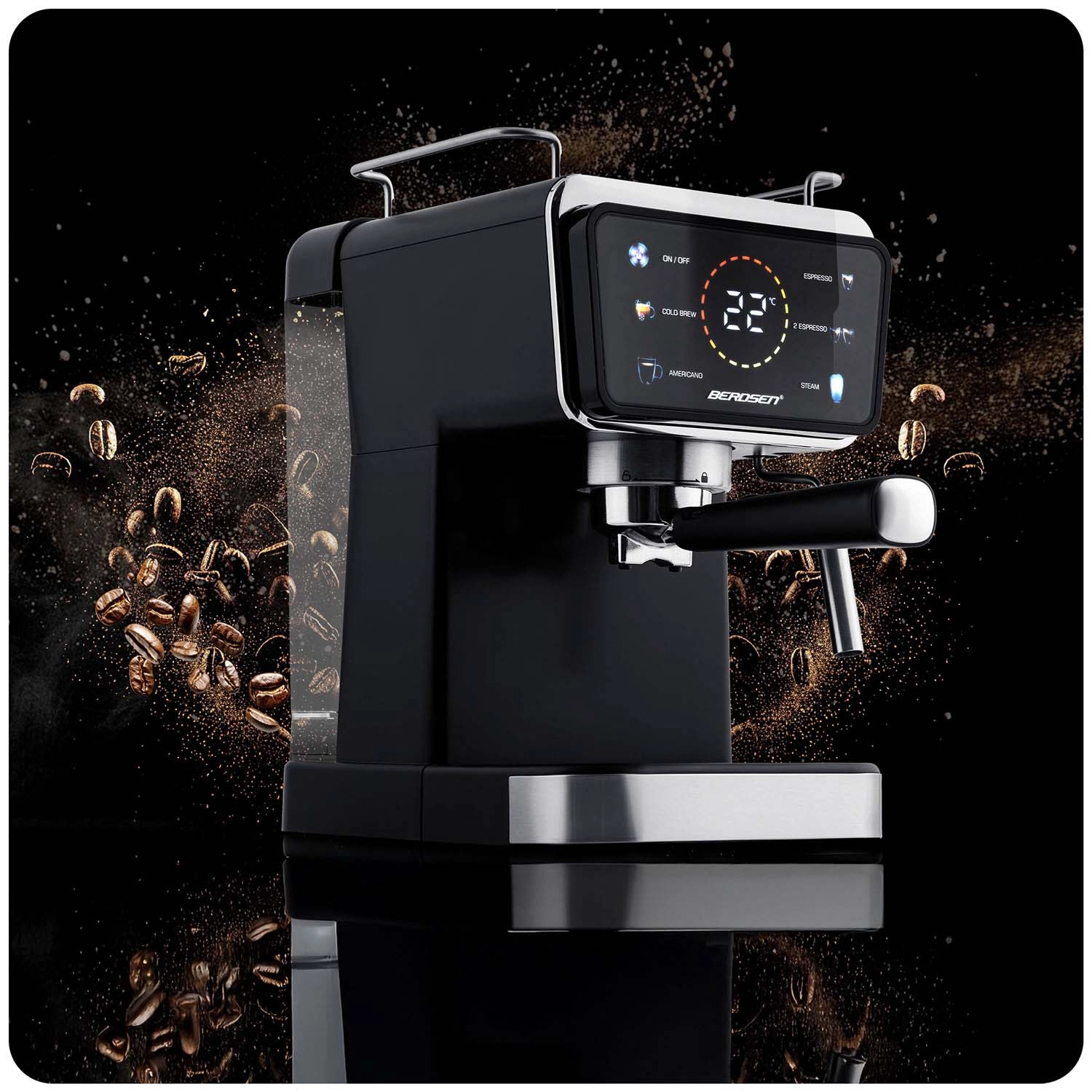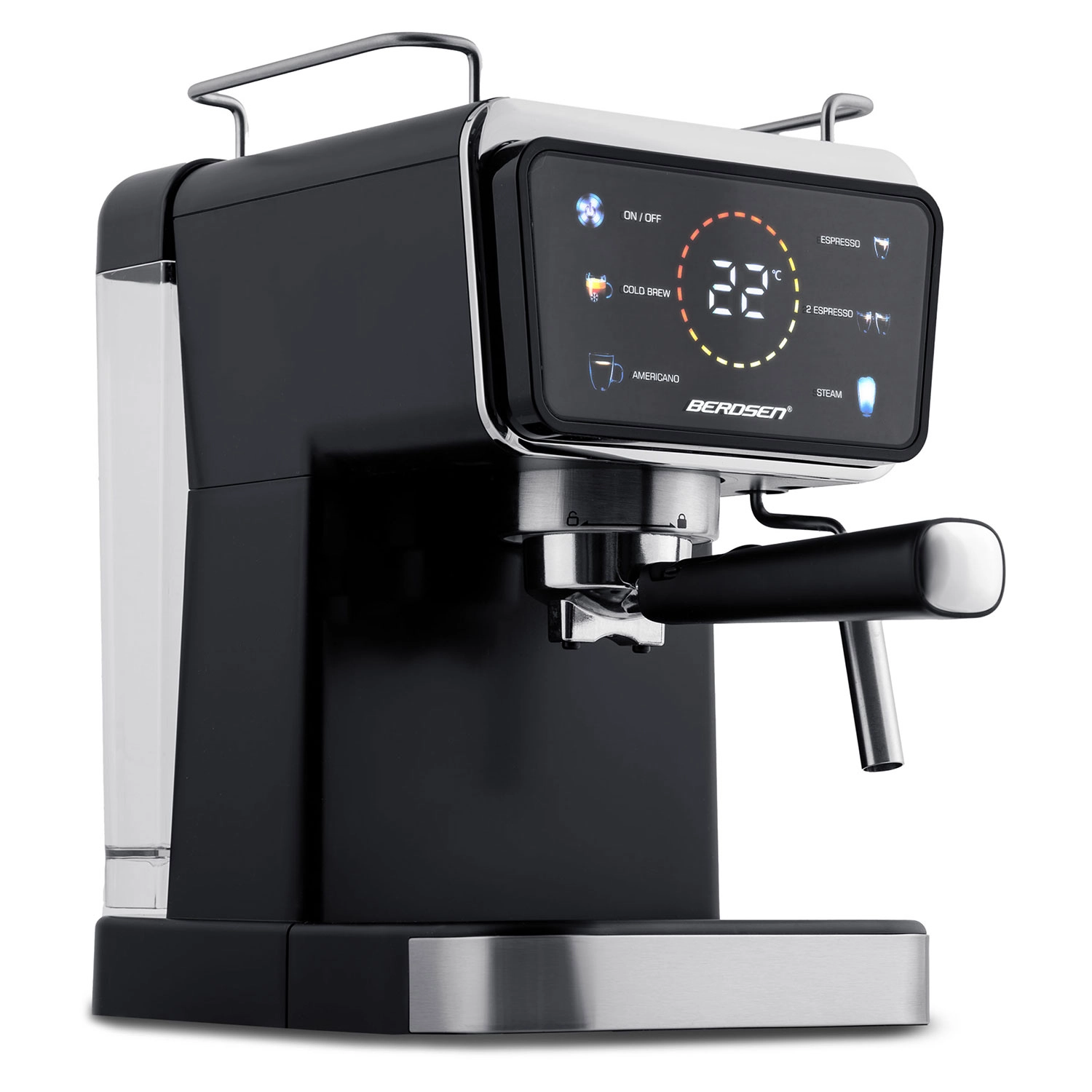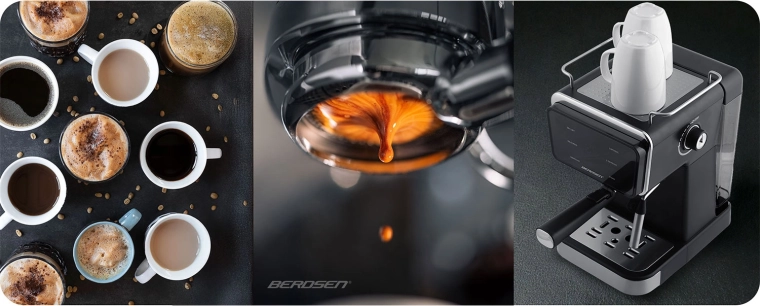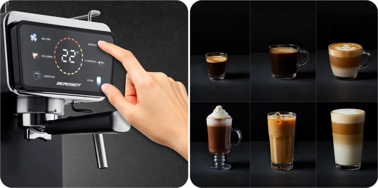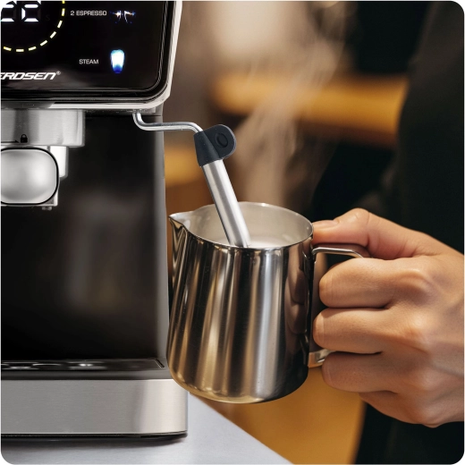 Proměňte svou kuchyni v domácí kavárnu. Pákový kávovar Berdsen kombinuje výkonnou 20barovou pumpu a přesný systém extrakce pro intenzivní aroma, plnou chuť a perfektní cremu. Dotykový panel nabízí rychlou volbu funkcí espresso, pára i studené espresso, zatímco profesionální parní tryska vytvoří hustou, sametovou pěnu pro cappuccino, latte nebo flat white.